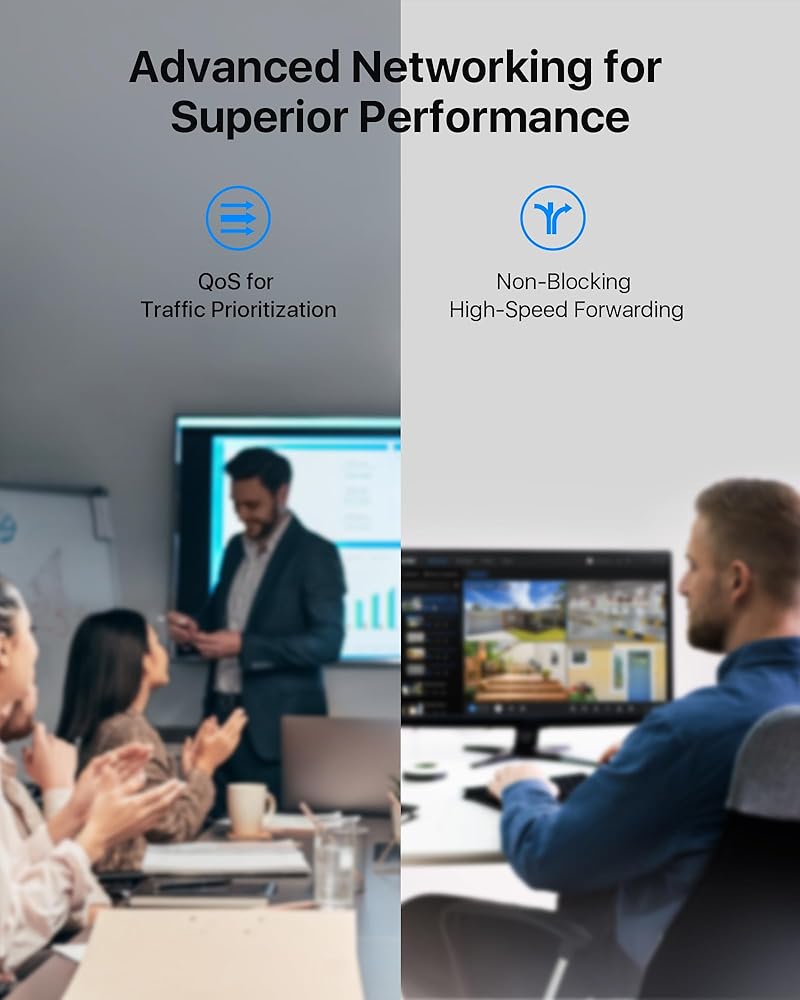 Short-circuit & 4KV Lightning Protection: Equipped with professional short-circuit and 4KV lightning protection, safeguarding against sudden surges and lightning strikes that could potentially damage your PoE switch and connected devices. Additionally, the switch's intelligent poe chip detects abnormalities and automatically restarts, minimizing maintenance costs.