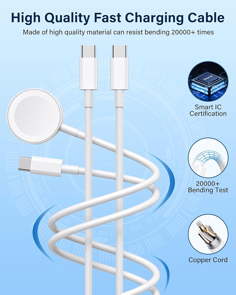 【Fast USB-C Cable & iWatch Cable】USB C Charging Cable with the E-Marker Chip, it ensures a rapid 3A charging speed, ensures 100% high speed charge for iPhone 16 15 / Pad / Galaxy / Pixel. with lab-tested to withstand 20,000 bends. The iWatch Charger Fast Charging Cable made of high-quality ABS+PC and pure copper wire, it can automatically detect your equipment and provide a stable, fast and safe charging experience.