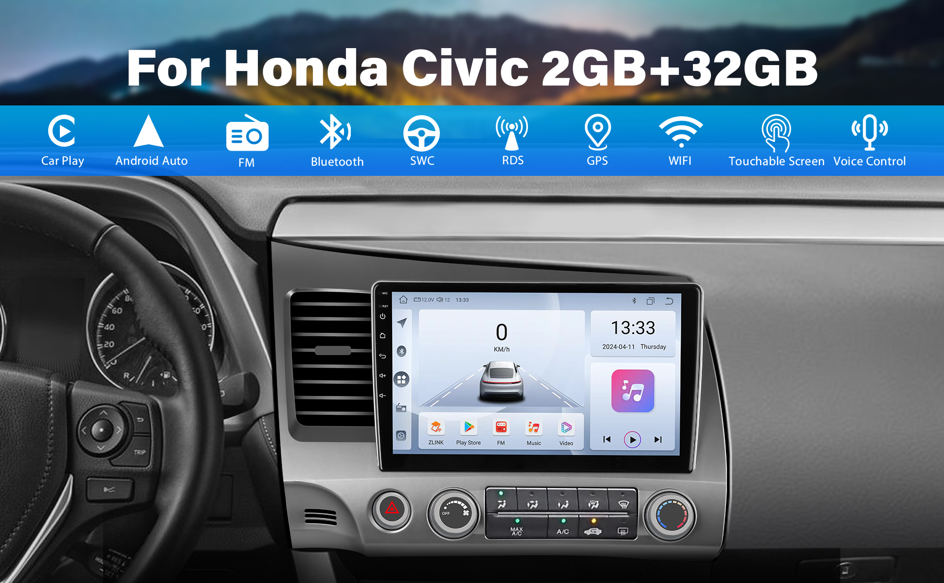 【Car Radio for Honda Civic】This is an Android touchscreen car stereo for Honda Civic with a form factor that matches the factory dashboard, which is more beautiful and gives your car a new look. 2G RAM + 32G ROM memory and a large 10-inch touchscreen ensure smooth operation while you're driving, and the machine responds quickly.