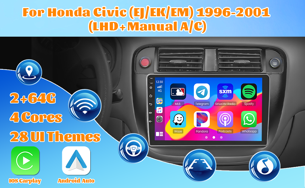 Wireless/Wired CarPlay & Android Auto: For honda civic car play radio supports connect your phone and for honda civic car radio with Bluetooth (Wireless) or original USB data cable (Wired). And you can easily make/answer phone calls, listen to music, GPS navigation, integrating smart voice control via Siri and Google assistant to bring you more comfortable and convenient driving experience