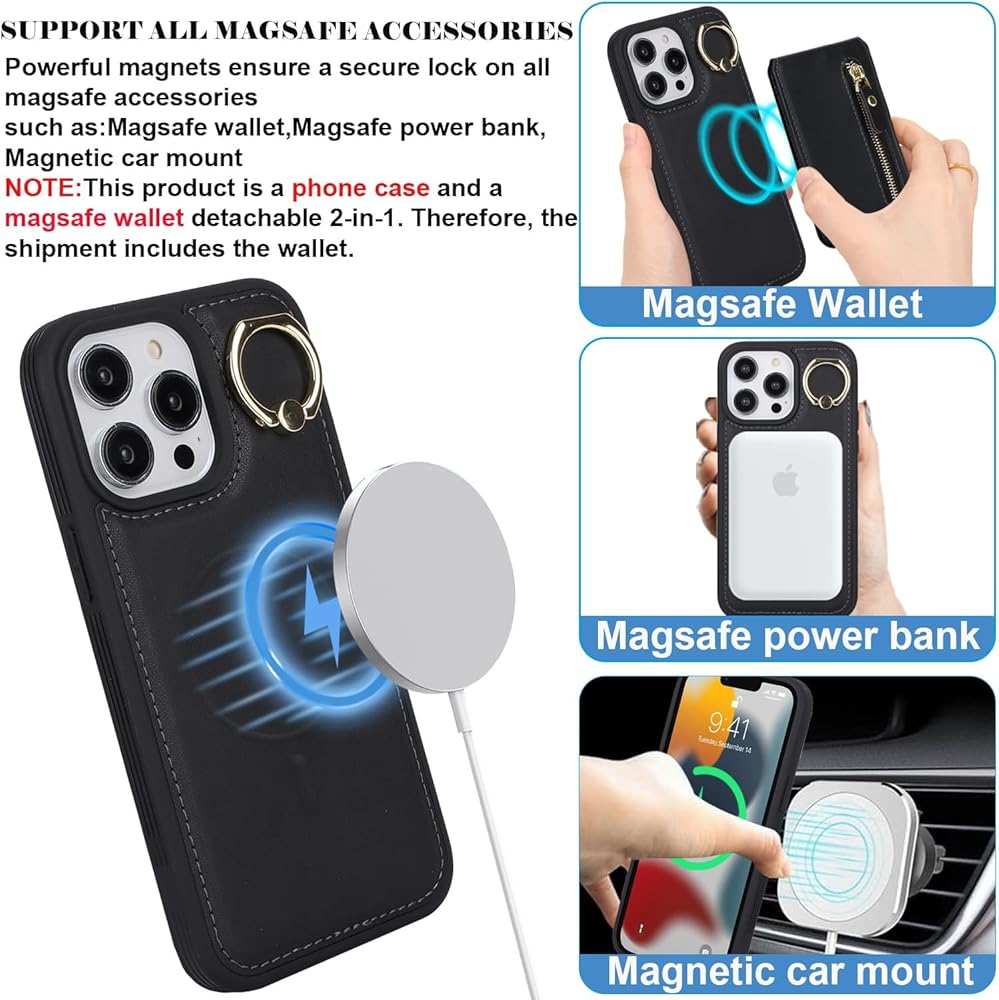 【Super Strong Magnetic Force&Kickstand Function】Our magsafe wallet features strong built-in magnets and the magnetic force,magnetic card holder wallet allow it to effortlessly snap into place on the back of your iPhone, no worry about the cards and cash falling off;The Stand can be converted into a multi-angle comfortable view for reading.