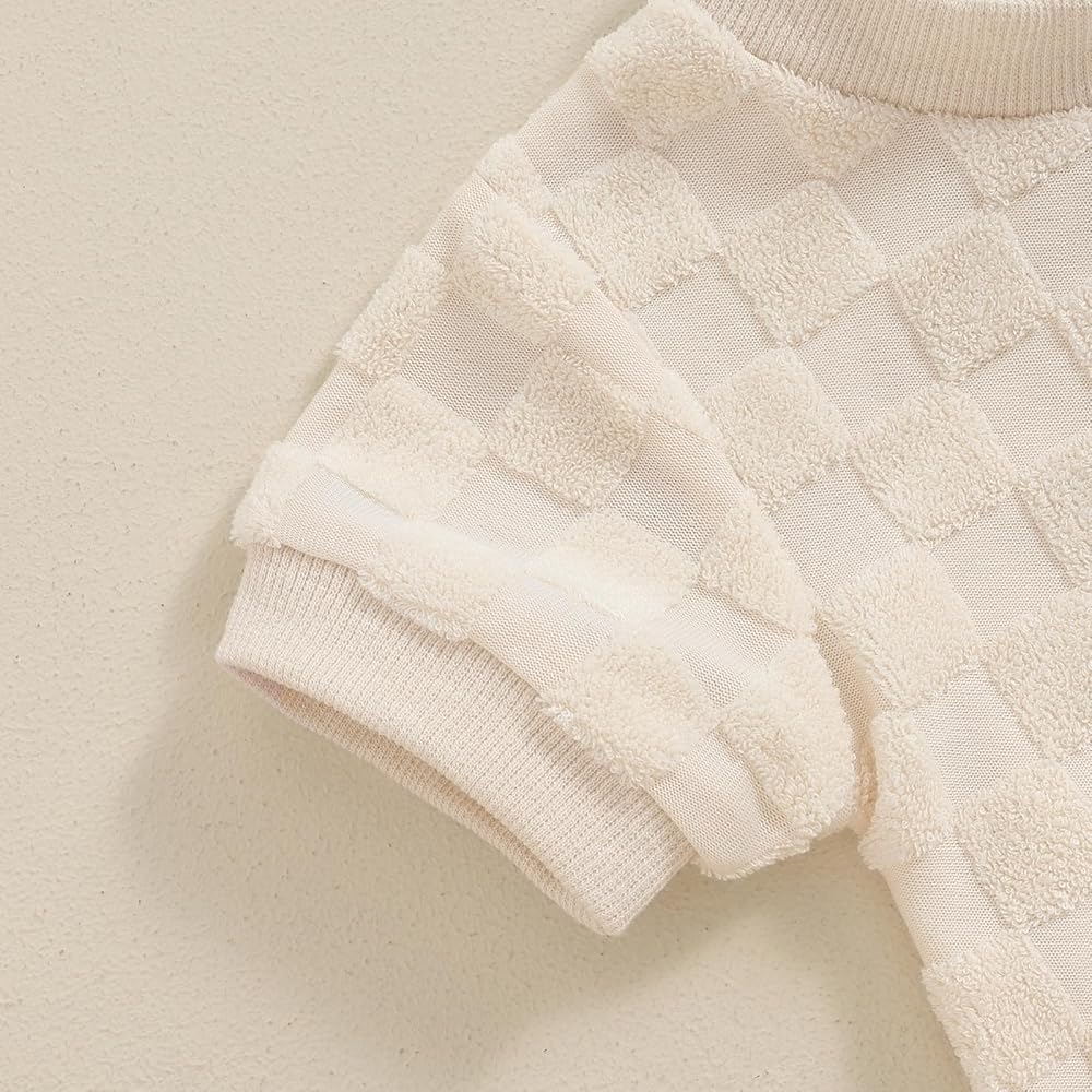 Baby Boys Girls Romper Cute Short Sleeve Crew Neck Checkerboard Bodysuit Newborn Summer Playsuit