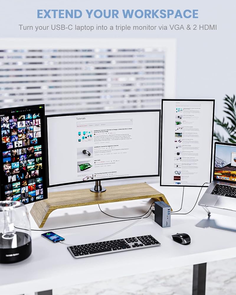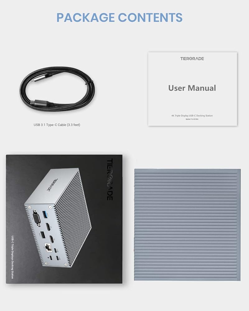 Stable and Reliable Wired Ethernet: The RJ45 Gigabit Ethernet port of the Tiergrade triple display docking station provides up to 1Gbps and automatically adapts to 10/100/1000Mbps network speeds. A stable and reliable network can quickly load movies, download files or play games.