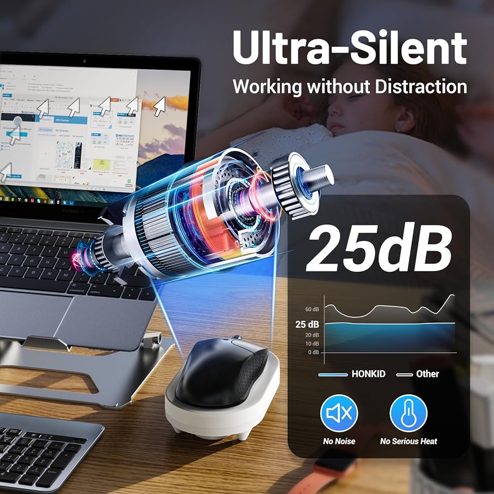 ULTRA-QUIET: Equipped with an ultra-silent micro motor, this mouse jiggler produces a mere 30 dB. In fact, our technical team dedicated 3 years to research and conducted thousands of tests to address the annoying noise issues
