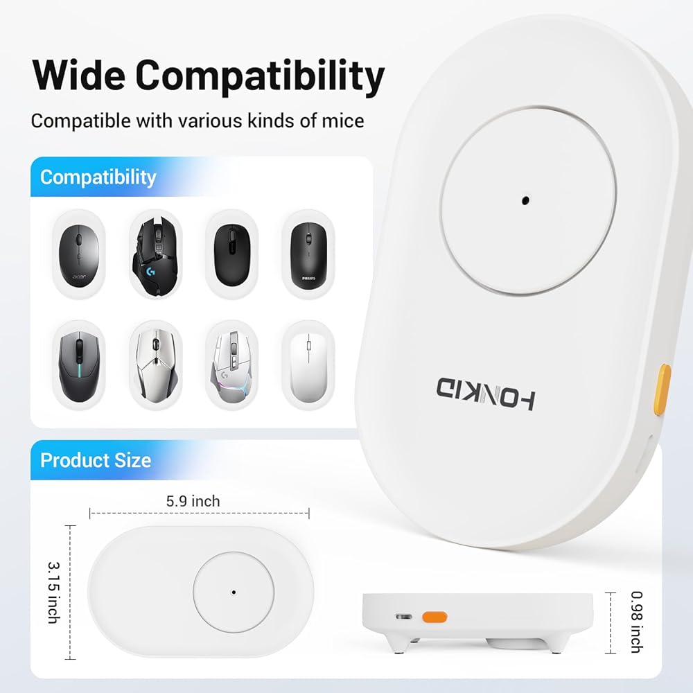 HONKID Undetectable Mouse Mover Jiggler with ON/Off Switch and USB Port Drive-Free,Simulate Physical Automatically Mouse Movement,Prevent Computer Laptop Inactive/Lockdown (White)
