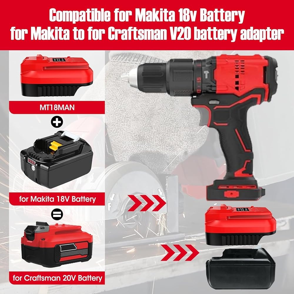 【For Craftsman 20V Power Tool Adapter】The MT18MAN adapter for craftsman is 100% compatible with makita 18V lithium battery to replace for craftsman 20V V20 battery and work well for Craftsman new V20 power tools.Just make full use of your extra power batteries.