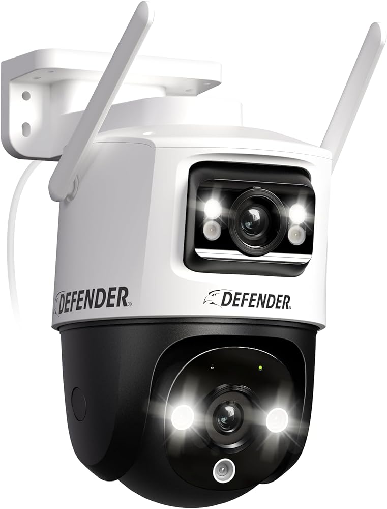 Defender AI Powered Guard Pro 3K Plus Dual Lens PTZ WiFi 6/Bluetooth Security Camera, Plug-in Power Cameras for Home Security with Human/Vehicle Detection, AI Auto-Tracking, Night Vision, Mobile App