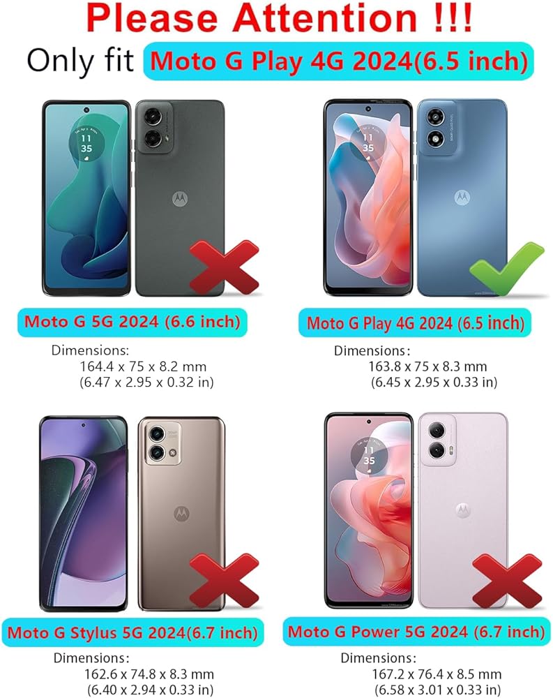 【Compatible With Moto G Play 2024 4G】【Not for Moto G 5G 2024 or Moto G Power 2024 or Moto G Stylus 2024】,Package includes Soft HD Screen Protector and install them according to the instructions.【Note that】wireless charging is not supported!