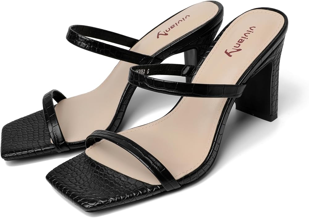 👠Square Toe Elegance: Classic heels are always popular. The square toe look with an open toe elegance will make your style pop whether you're choosing a casual outfit or a formal gown.