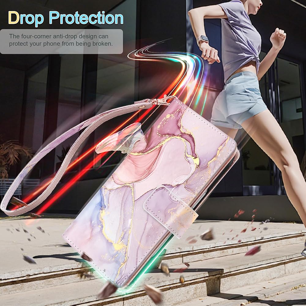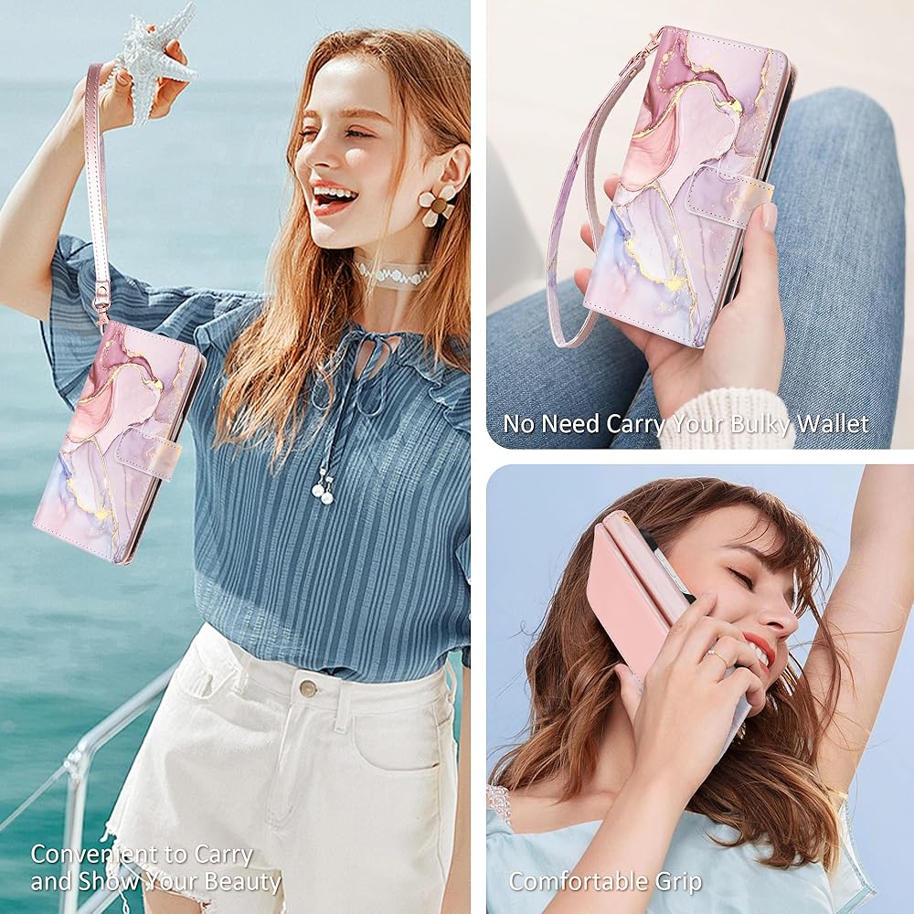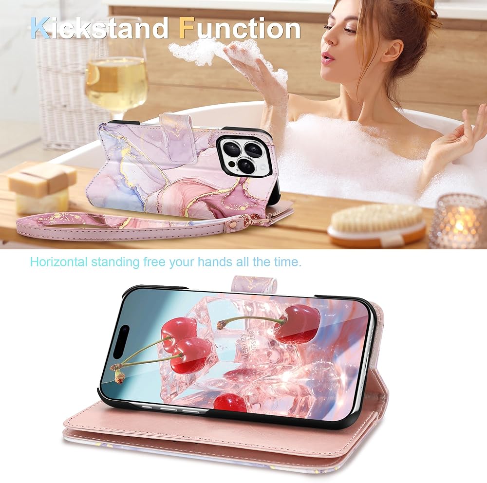【Stylish Marble Pattern】Stylish marble iPhone 16 Pro case wallet for women and girls,attractive and elegant design to fit your personality and unique sense of style,premium synthetic PU leather with hard PC interior material brings very comfortable touch feel,pretty with bright glitter will never fade off