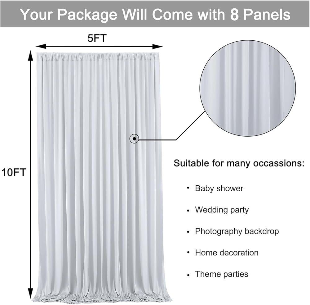 Wrinkle-Free 10ft Fabric Drape Black Backdrop Curtain: Our party background curtain panels are made of wrinkle-free material, which could be used without ironing. Let you make a unforgettable memories for your family or your friends.
