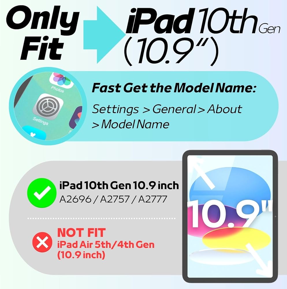 【 PLEASE FIT CORRECT IPAD DEVICE 】- This case can ONLY FIT the iPad 10th Generation 10.9 inch 2022 released (Model: A2696 / A2757 / A2777). PLEASE CHECK THE MODEAL NAME OF YOUR IPAD CAREFULLY before purchase!