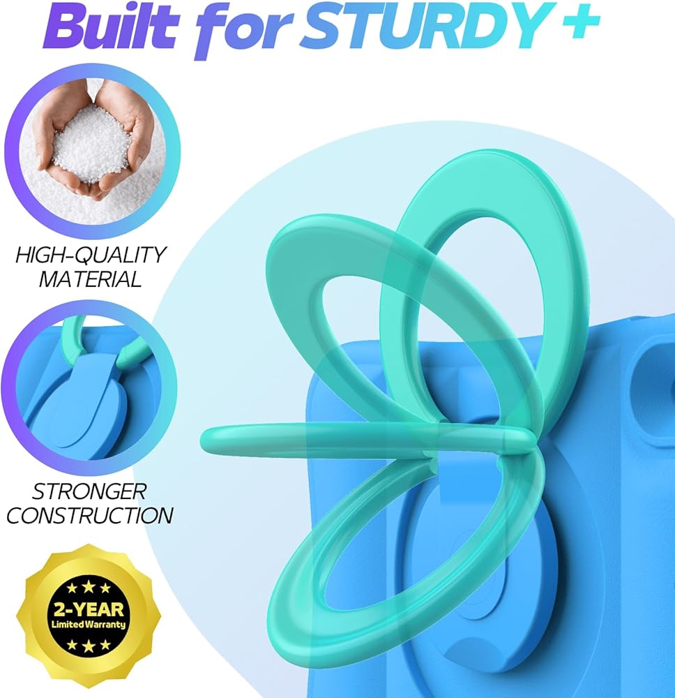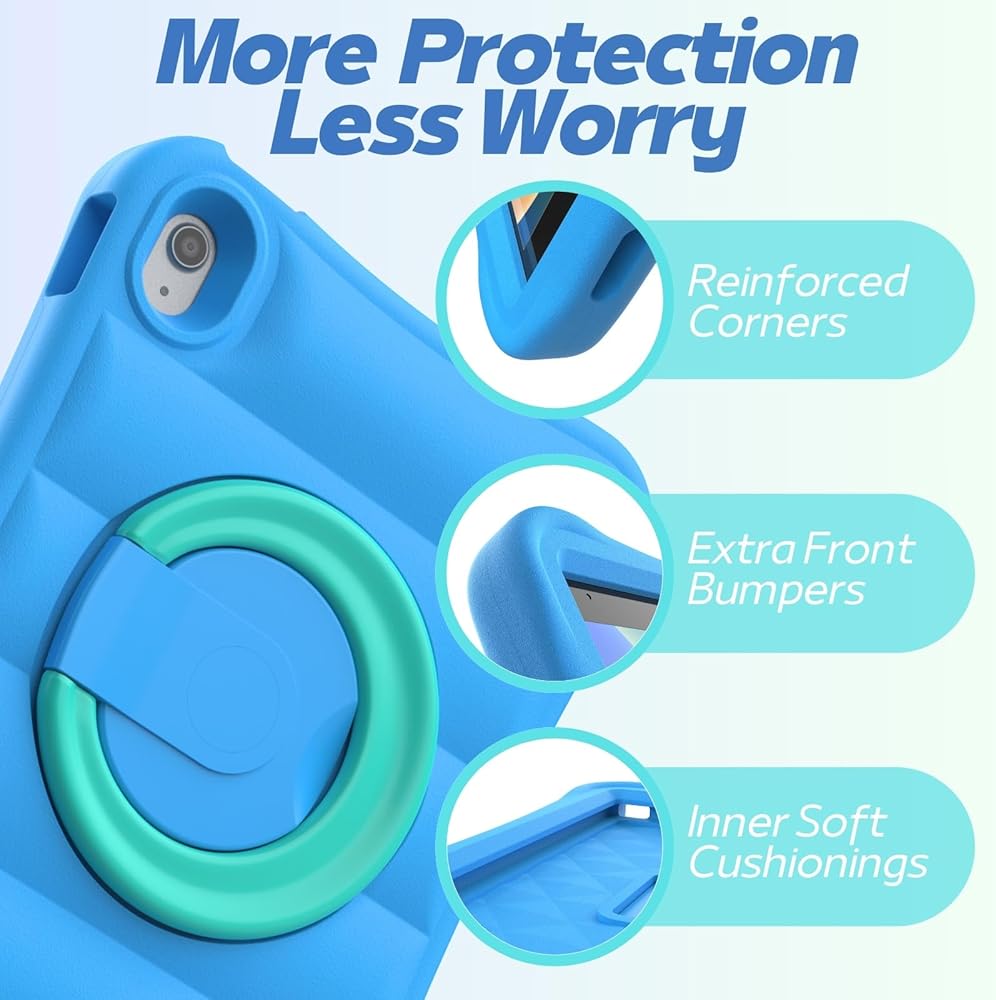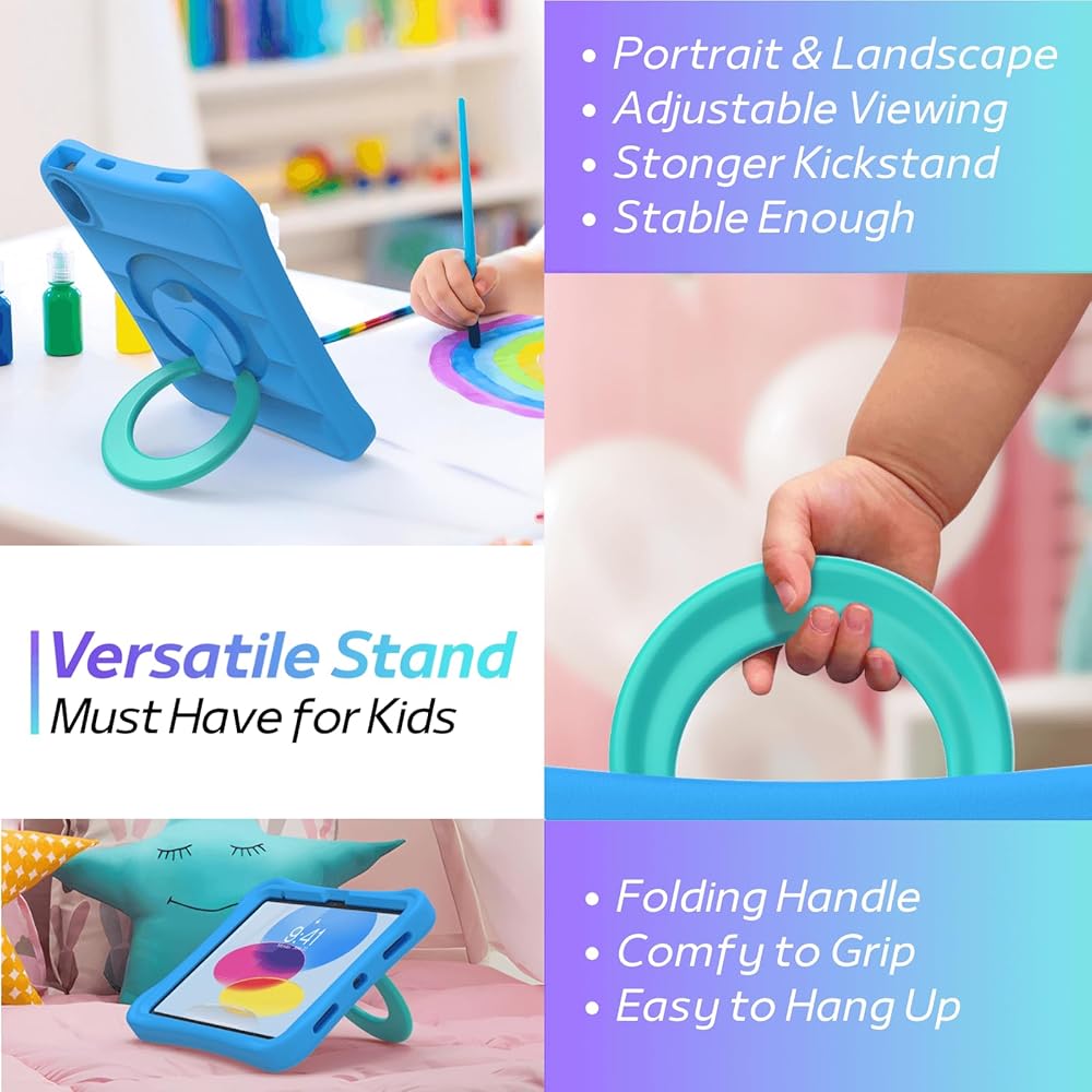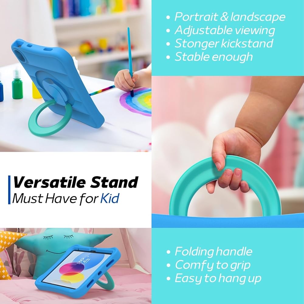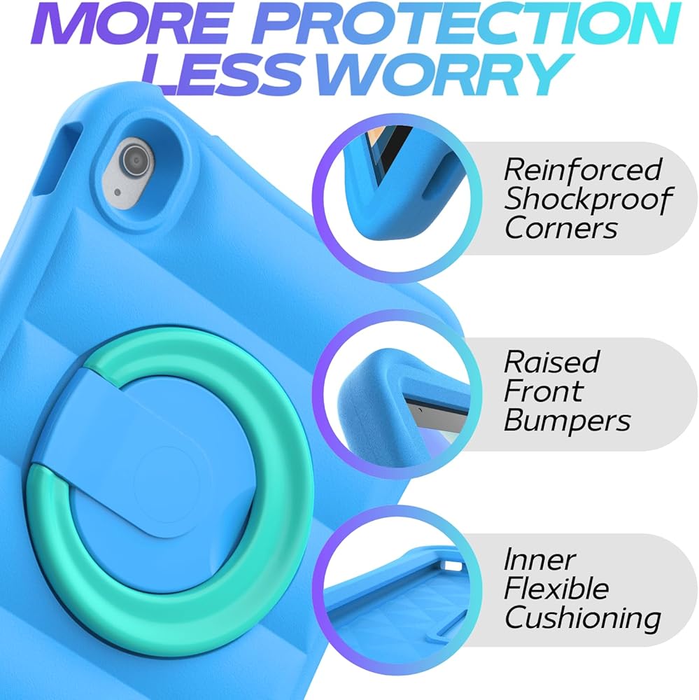 MRWHO Kids Case for iPad (A16) 11th Generation 11 inch 2025/ 10th Generation 10.9 inch 2022 - Sturdy Lightweight Flexible Shockproof Rotating Stand Handle Girls Boys Cover for iPad 11 10 Gen, Blue