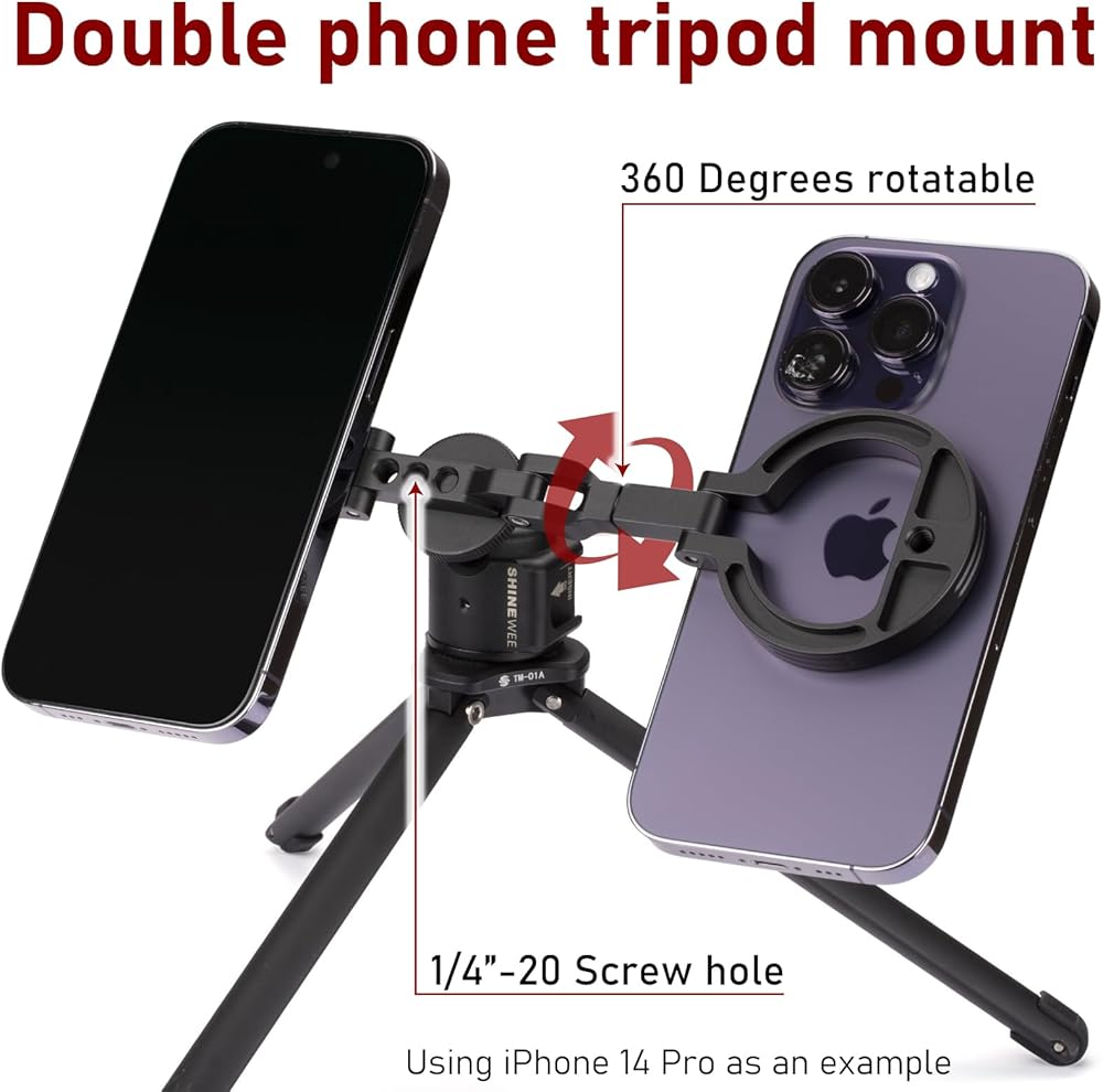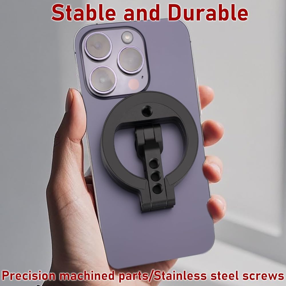 Double Magnetic Ring Phone Holder – Attach to Any Iron Surface | 1/4" Screw Hole | Compatible with iPhone 17/16/15/14/13/12 Pro Max Series & Magnetic Cases (MS-02R)
