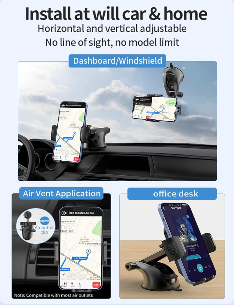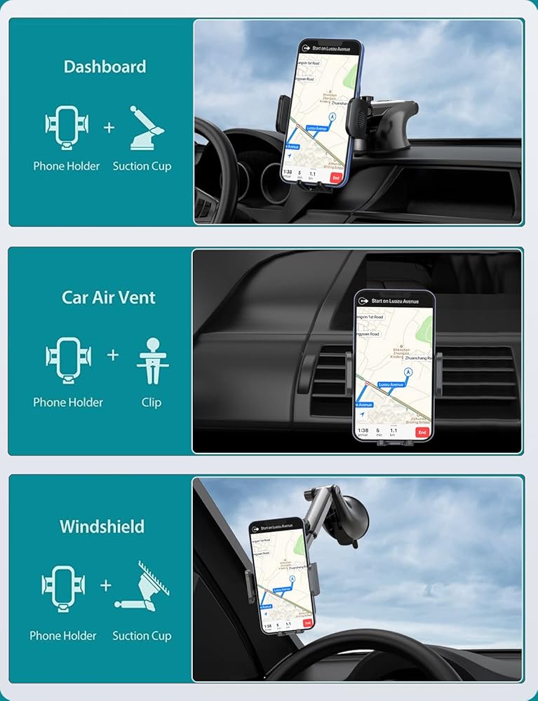 .Versatile: car phone holder is an affordable, multi-functional car phone holder with an air vent clip and a suction cup that you can mount on your air vent, windshield, or dashboard. If you're looking for a car mount that offers a little something extra, the venshun phone holder is an ideal choice.