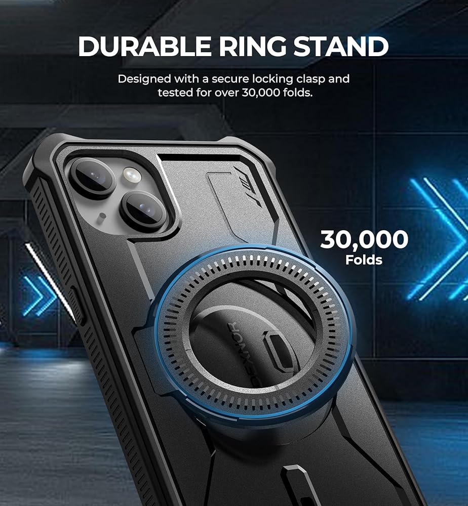 Dexnor Magnetic Case for iPhone 15 Plus/iPhone 14 Plus Case, Compatible with MagSafe, [Built in Screen Protector and Kickstand] Full-Body Shockproof Rugged Bumper Phone Cover, Black