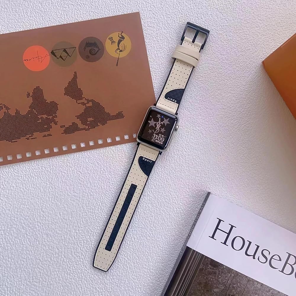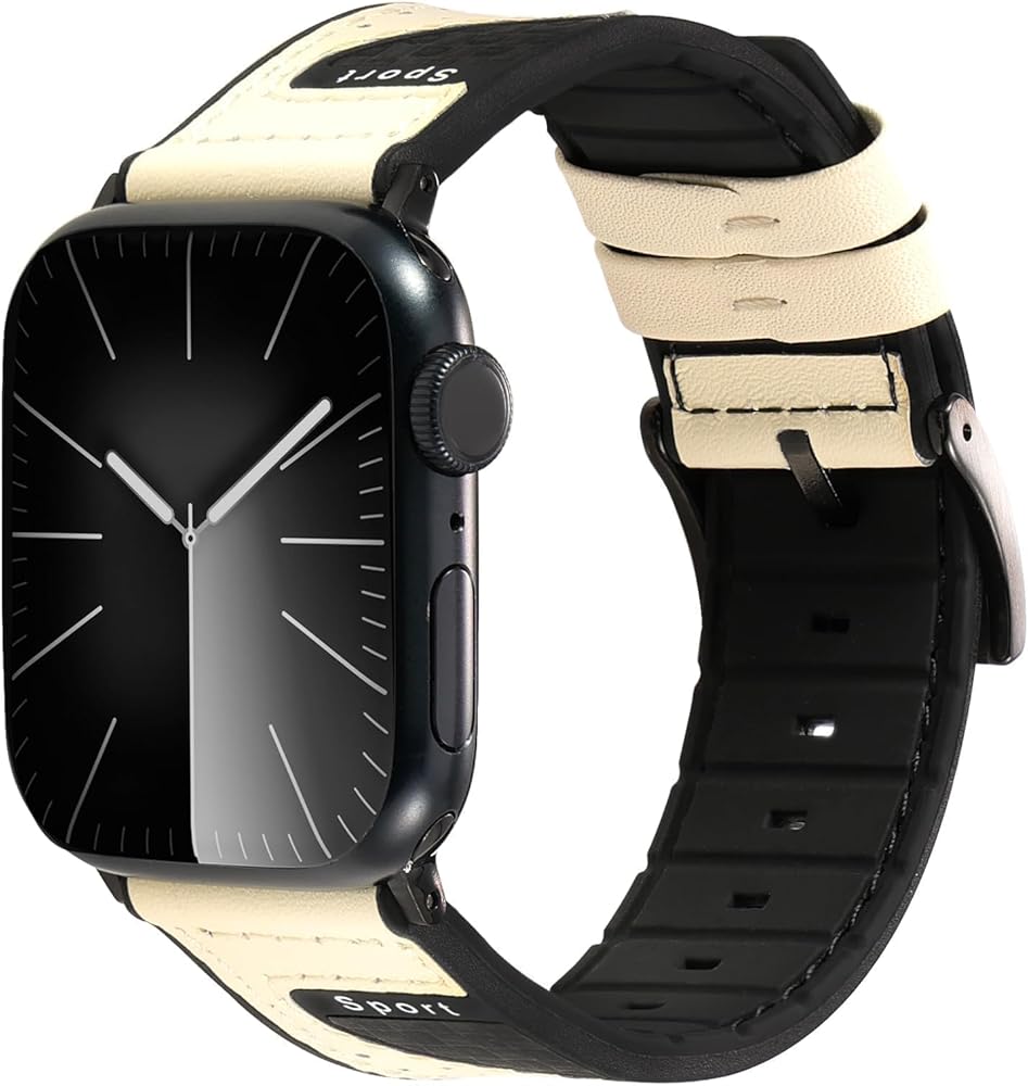 Band Compatible with Apple Watch Band 38mm 40mm 41mm 42mm 44mm 45mm 49mm,Top Leather Silicone Sports Band Wristband for iWatch Ultra SE Series 9/8/7/6/5/4/3/2/1