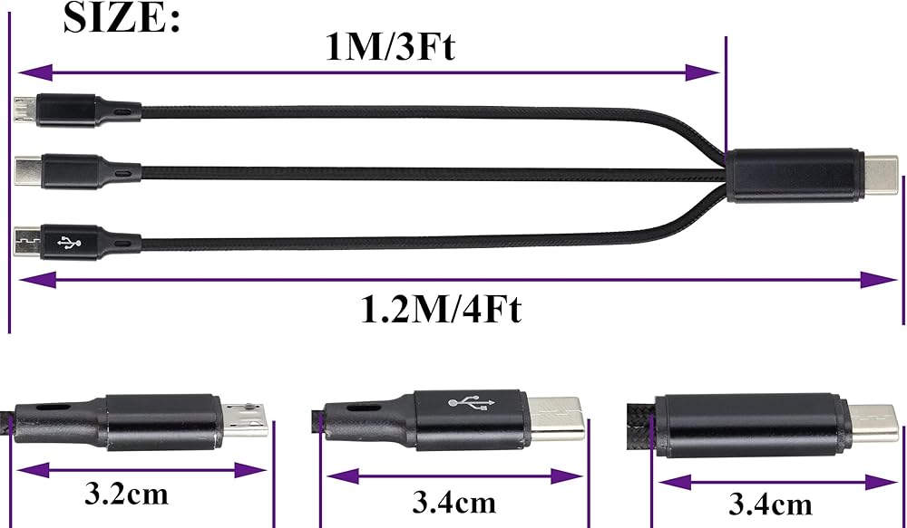 High Speed Charging Data Synchronization USB Type C 1 to 3 Cables:It allows simultaneous charging up 3 USB type C devices. Please ensure that the voltage and current output by the charger are sufficient.