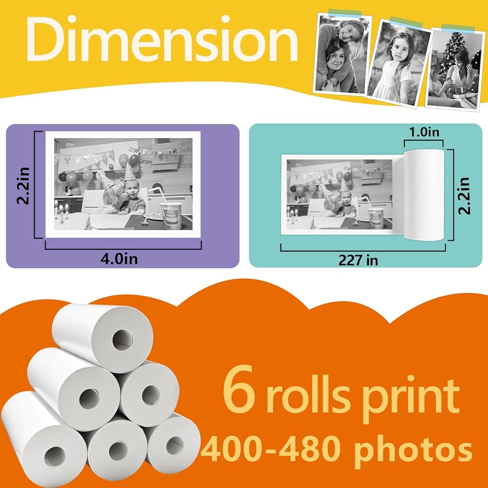 [6 Rolls Print Paper]: Embark on a creative journey with our 6-roll instant camera refill print paper set! Each roll, measuring approximately 2.2 inches wide by 18.9 feet long, unleashes a magical stash of 70-90 prints, ensuring a long-lasting supply for your little photographer's endless adventures and memories.