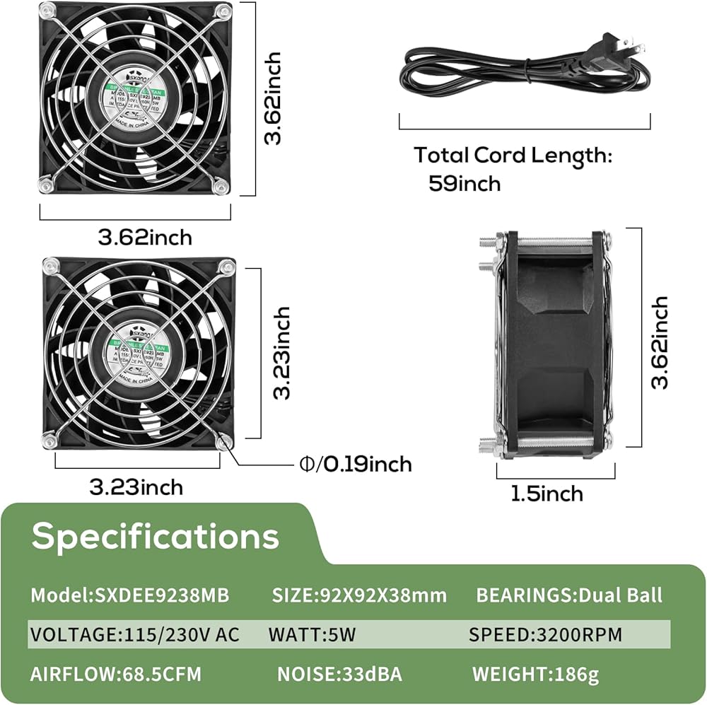 Low Power Consumption: With only 5W power consumption, the SXDOOL 92mm EC Fan is more energy-efficient than traditional AC fans, saving you energy costs.