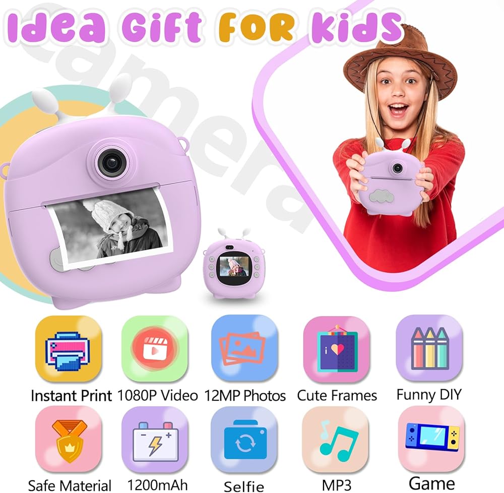 كاميرا الطباعة الفورية الإبداعية: هذه الكاميرا الفورية الجديدة تمامًا قادرة على التقاط صور ملونة وطباعتها بالأبيض والأسود، باستخدام الطباعة الحرارية، دون الحاجة إلى أي حبر. يمكن للأطفال استخدام الكاميرا لاستكشاف الطبيعة، وتسجيل مغامرات طفولتهم، ليصبحوا مصورين صغار في حياتهم الخاصة. إنها هدية مثالية لأعياد الميلاد والكريسماس وعيد الشكر وعيد الفصح واليومي.
