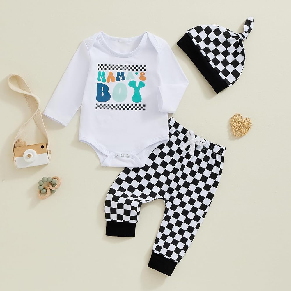 Design: Baby boy fall winter clothes,ute baby boy clothes,going home outfit baby boy,newborn hospital outfit boy,little brother newborn outfit, long sleeve, round neck, 'little dude' 'mr steal your snacks' print, casual romper, checkerboard print, drawstring pants, very skin-friendly, classic and generous, newborn 1st outfit, make your little one very cute