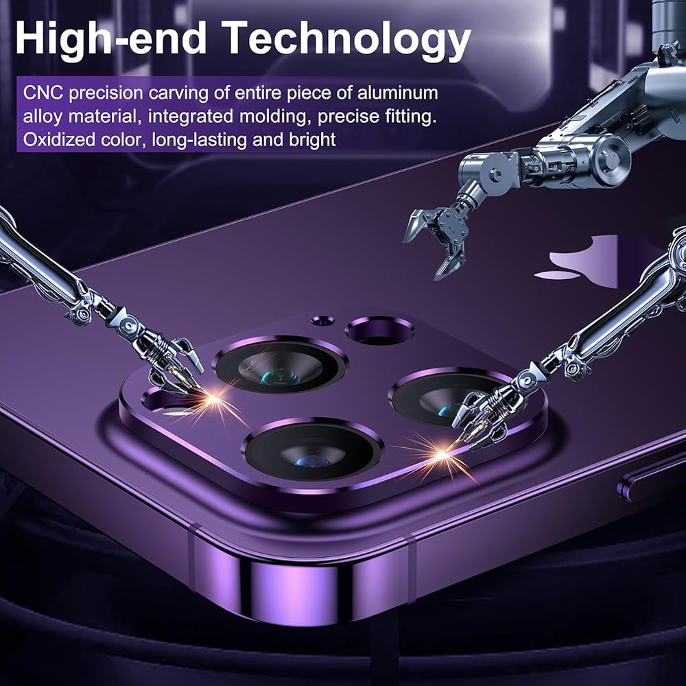 【PERFECT FIT】 Mothca alloy camera lens protector is carved from an entire aluminum alloy plate by precise CNC processing technology, thus the lens protector is solid, slim and fits the iPhone 14 Pro/ iPhone 14 Pro Max camera lens seamlessly