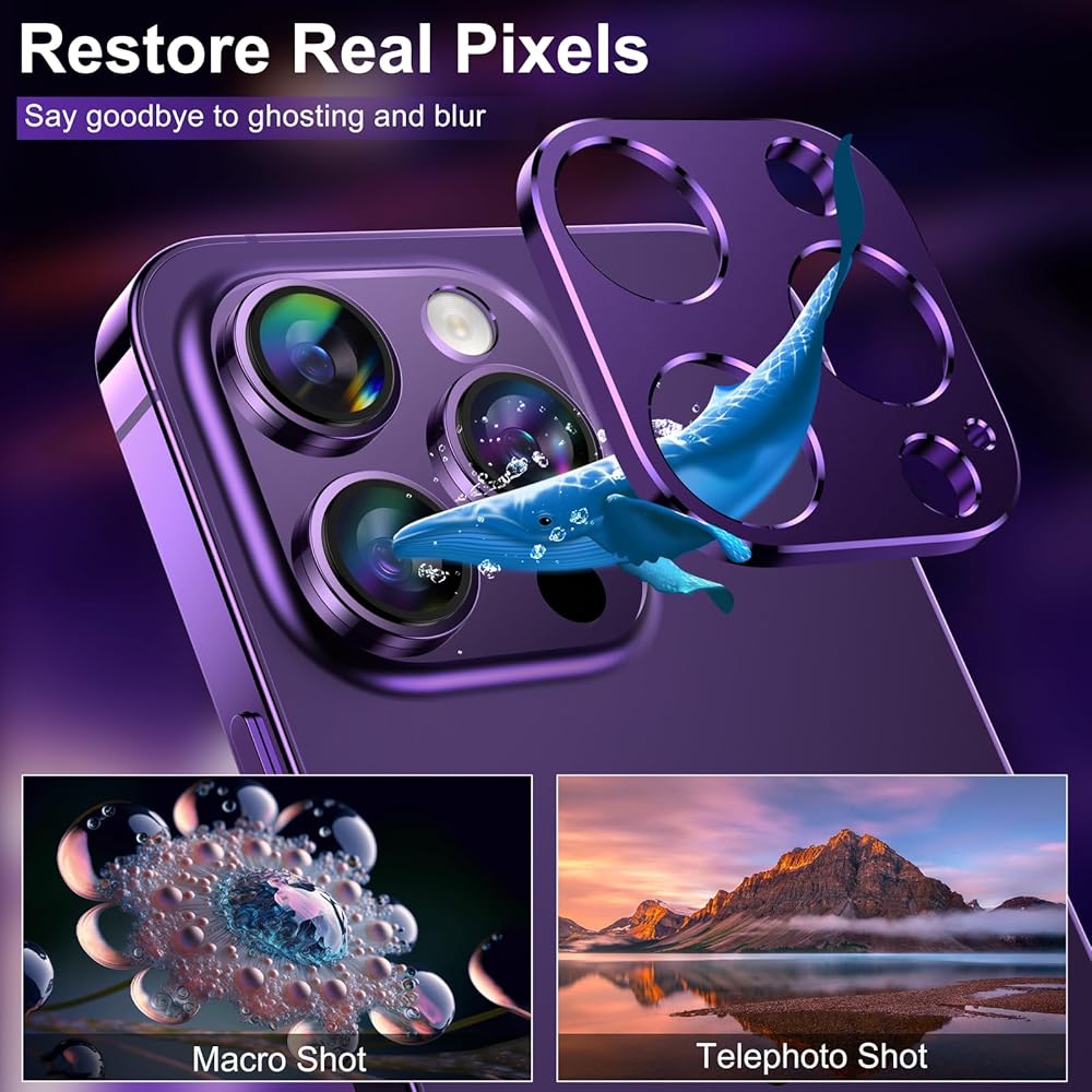 【UPGRADED PROTECTION】Mothca camera lens protector for iPhone 14 Pro/ iPhone 14 Pro Max is made of premium aluminum alloy material, protect the camera lens from daily scratch and accidental drop damage. The matte finished surface avoids fingerprints, dusts and smudges, keeps the camera lens as clean as brand-new