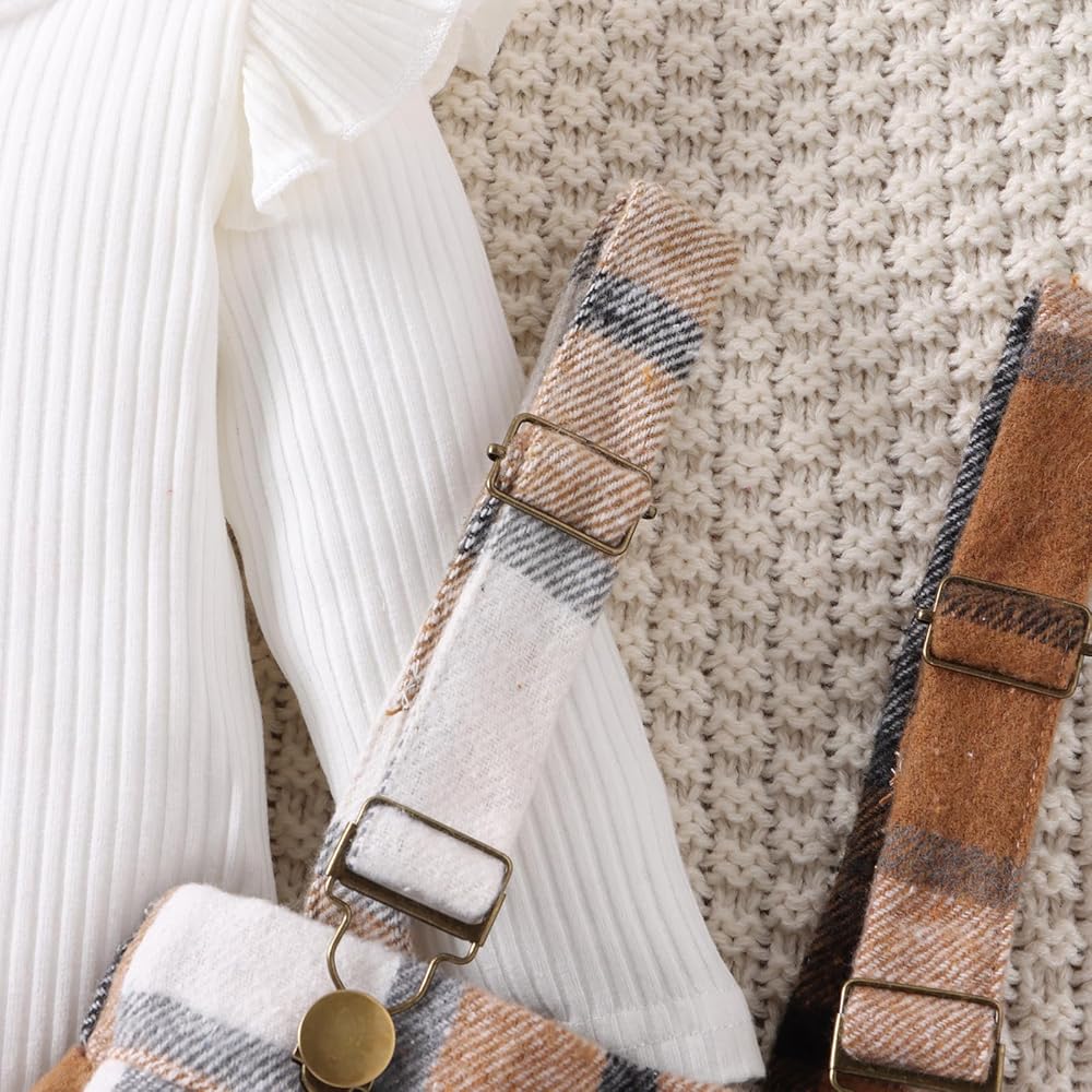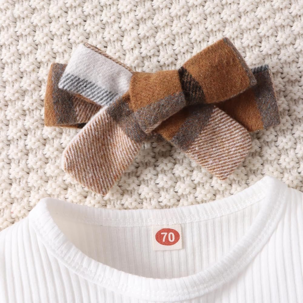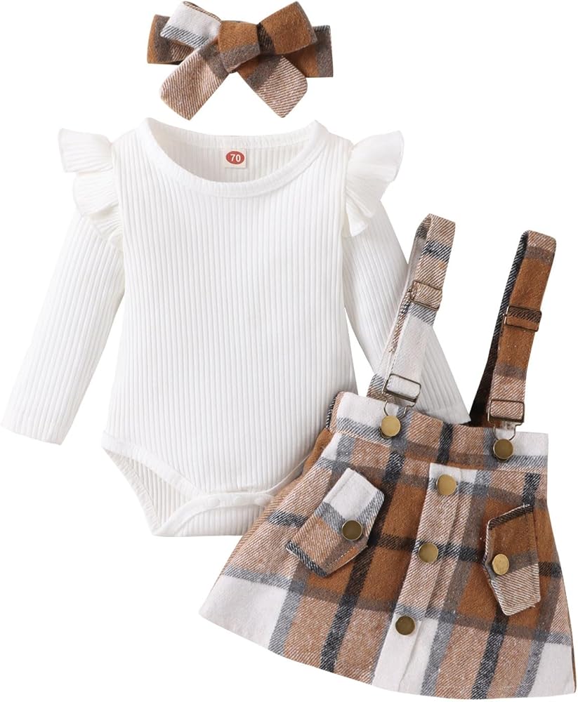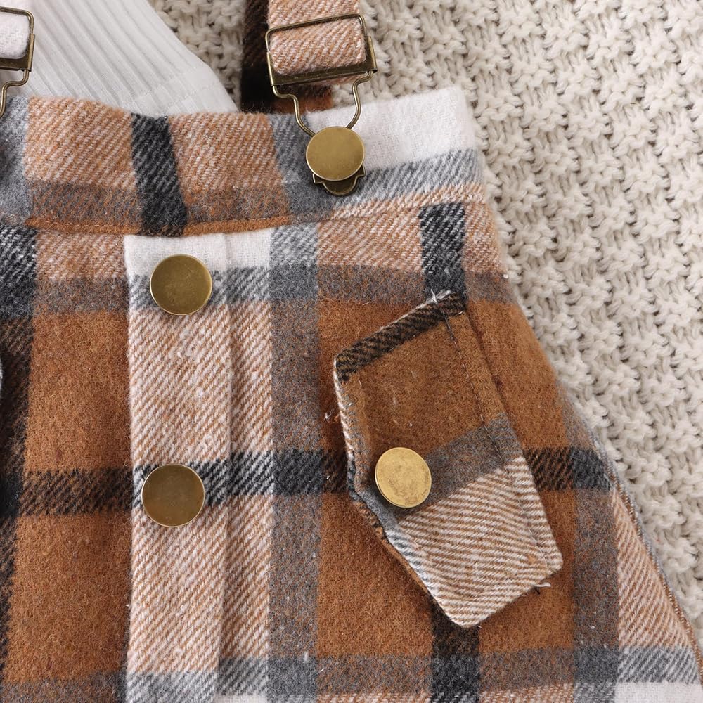 Infant Girl Fall Outfits Baby Girl Romper Plaid Suspender Dress Skirt with Headband 3Pcs Festival Clothes