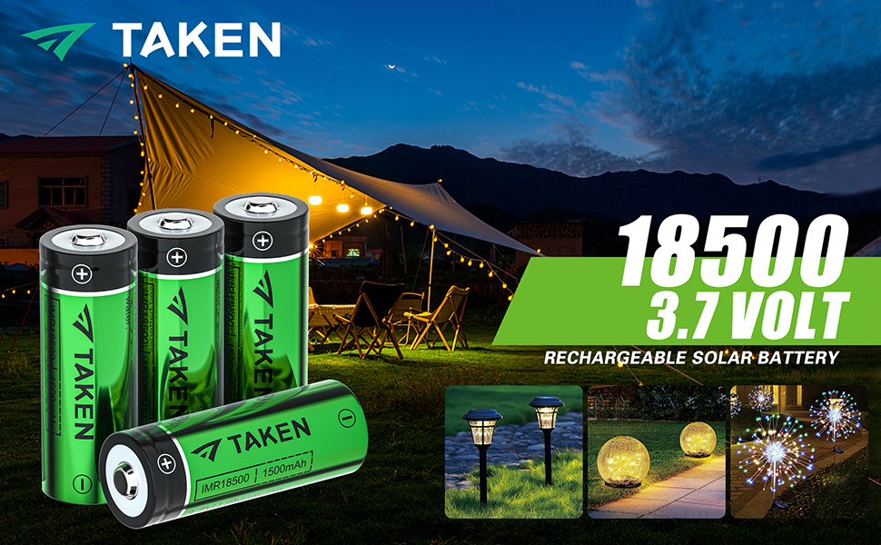 Versatile Battery - TAKEN 18500 battery compatible with solar lights, garden lights, security system panels, LED flashlights, landscape lighting.