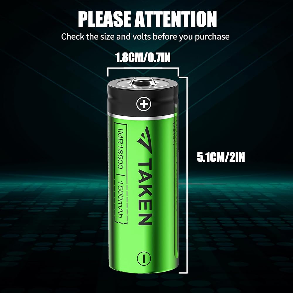ملاحظة مهمة - هذه بطارية ليثيوم أيون 18500 3.7 فولت قابلة لإعادة الشحن، وليست بطارية 18650. إذا كان لديك أي أسئلة حول المنتج، فيرجى إبلاغنا بذلك. سأقدم خدمة مرضية في أسرع وقت