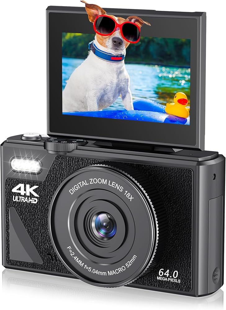 64MP and UHD 4K: This camera features a 64MP high resolution sensor, capable of capturing detailed images rich in color and contrast. With a flip out 3 inch IPS screen and 4K video resolution, you can smoothly shoot stable HD videos.