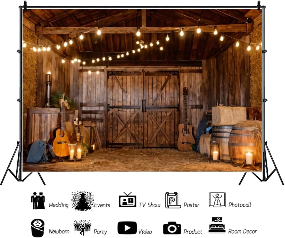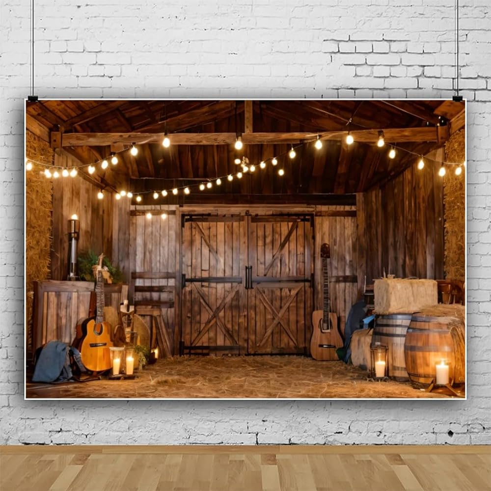 West Farm Barn Banner 7x5ft Fabric Rustic Birthday Party Decoration Country Concert Backdrop Cowboy Cowgirl Party Photos Music Party Background