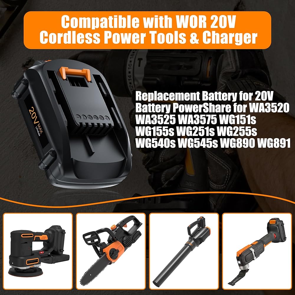 【Widely Compatible】Perfectly Replacment for Powershare 20V batteries WA3575 WA3520 WA3525 WG151s WG155s WG251s WG255s WG540s WG545s WG890 WG891, etc. Can be charged with original chargers.