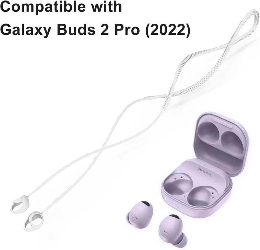 【Premium, Skin-Friendly Material】Crafted with a smooth surface and gentle touch, the Galaxy Buds Pro 2 anti-lost silicone lanyard won't irritate your skin during extended wear. Its high durability ensures it won't easily break, and the non-slip texture in the middle enhances its grip.