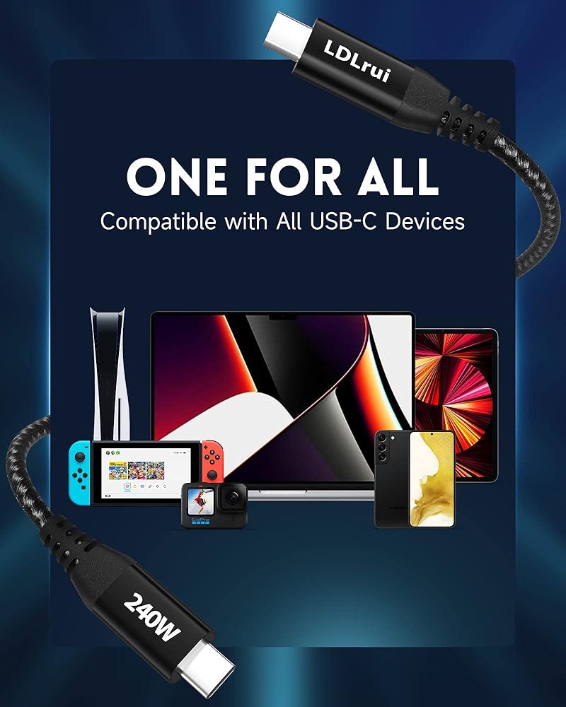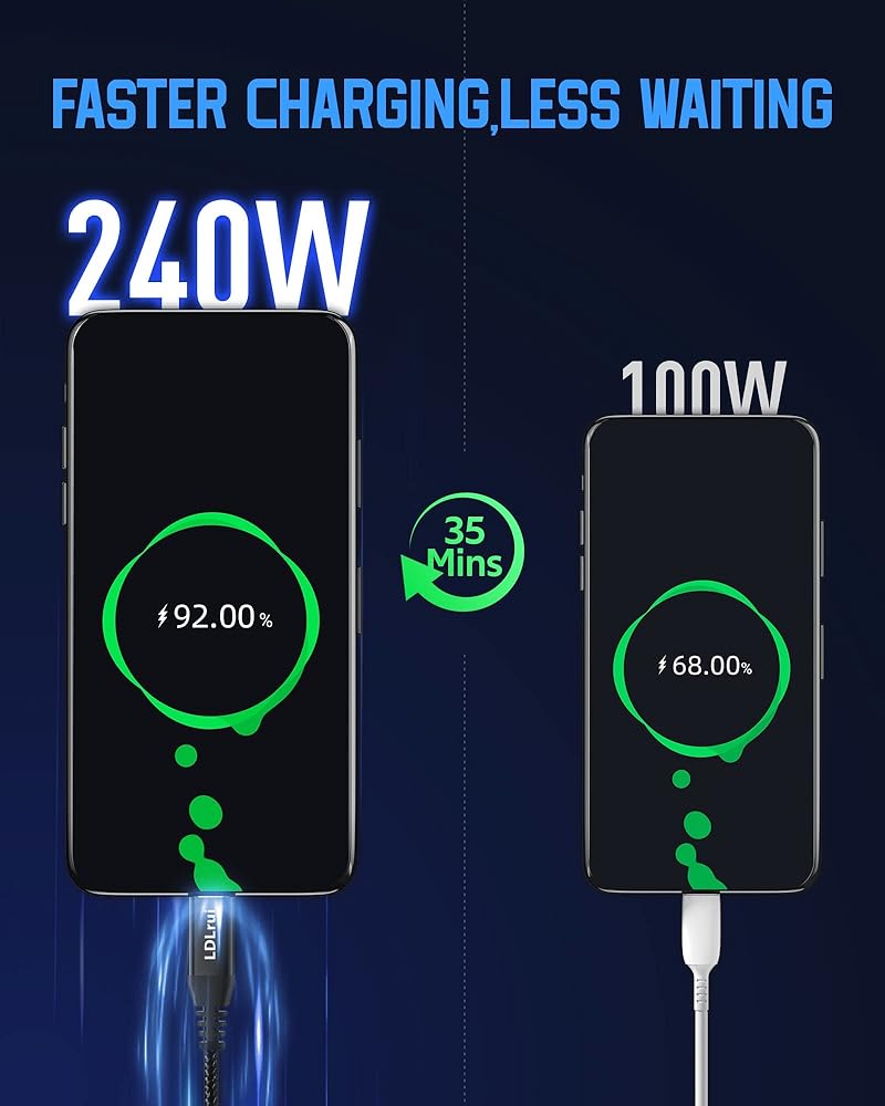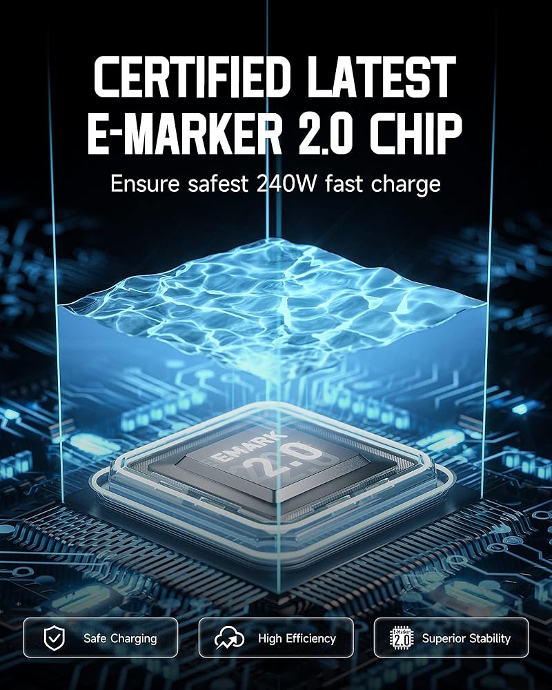 【Emarker Safe Fast Charging Chip】LDLrui's 240W C-cable uses the next generation eMarker smart chip to charge your devices at unprecedented speeds while maximizing safety throughout the charging process, preventing overcharging, overheating and other potential hazards. This means you can charge your devices with confidence, knowing they are protected from harm.