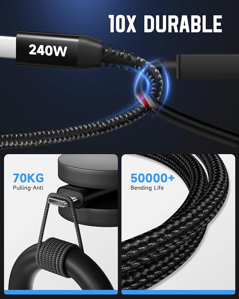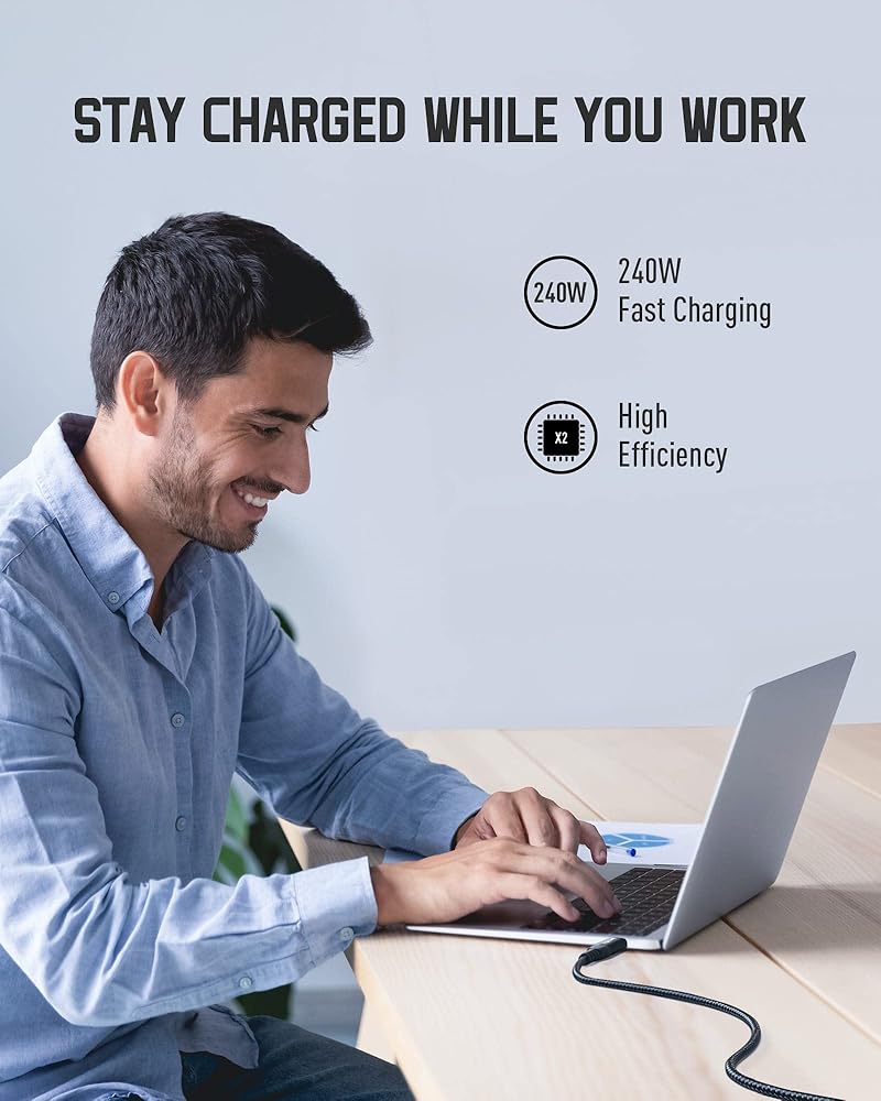 【240W Super Fast Charging】 This type c to type c fast charging cable supports PD 3.1 and QC 5 fast charging for your macbook pro and the new iPhone 15/15 Plus/iPhone 15 Pro Max; Fast charging provides you a fast and convenient way to charge your device up to 80 percent in 30 minutes, saving you even more charging time.