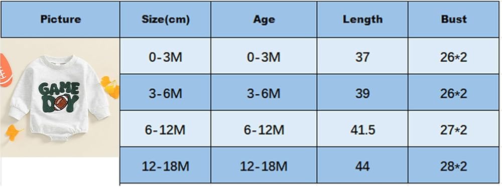【Design】: Football baby girl outfit, Football baby boy outfit, football romper baby girl boys, design with long sleeve, crewneck, Game Day letter Embroidery, cute baby girl clothes, baby girl boy football clothes, makes your baby girls more beautiful and fashionable!