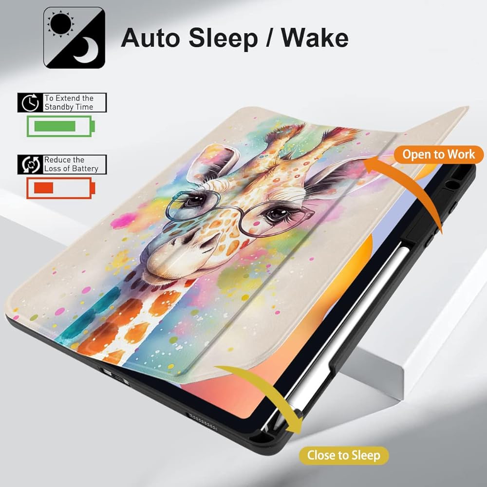MEEgoodo 3D UV Printing Smart Case Compatible with Galaxy Tab S6 Lite 10.4 in Characteristic: 1. The case is made of premium PU exterior, microfiber lining and soft TPU back cover 2. Case automatically wakes your tablet when opened and puts it to sleep when closed 3. You can easily fold the cover into different positions to create a stand for reading, viewing, typing, or making FaceTime calls 4. Built-in pencil holder, grab your tablet pencil effortlessly whenever you want, easily carry your tablet pencil with your device 5. Easy to Installation and remove 6. Convenient to use all the controls and features Compatible Model: SM-P610/P613/P615/P619 What's in the Box: A Case for Samsung Galaxy Tab S6 Lite 10.4 inch