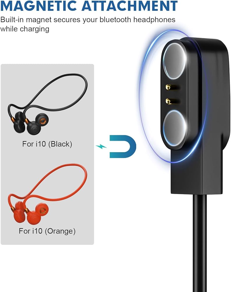 Ortizan 2 Pack Magnetic Charging Cable, I10 Open Ear Headphones Wireless Bluetooth Air Conduction Headphones Dedicated Charging Cable