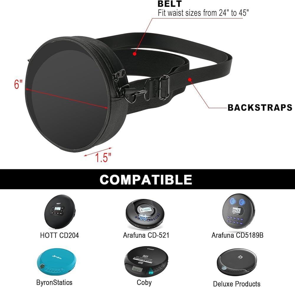 • 【Two Carrying Ways】TXEsign CD player carrying bag has a shoulder strap and a waist belt, so you can carry the CD player over shoulder when travel, or attach the bag around waist when running, enjoy music with ease.The waistband is 5cm width, with great elastic, will not dig in even during an intense exercise. Fit waist from 24 inches to 45 inches.