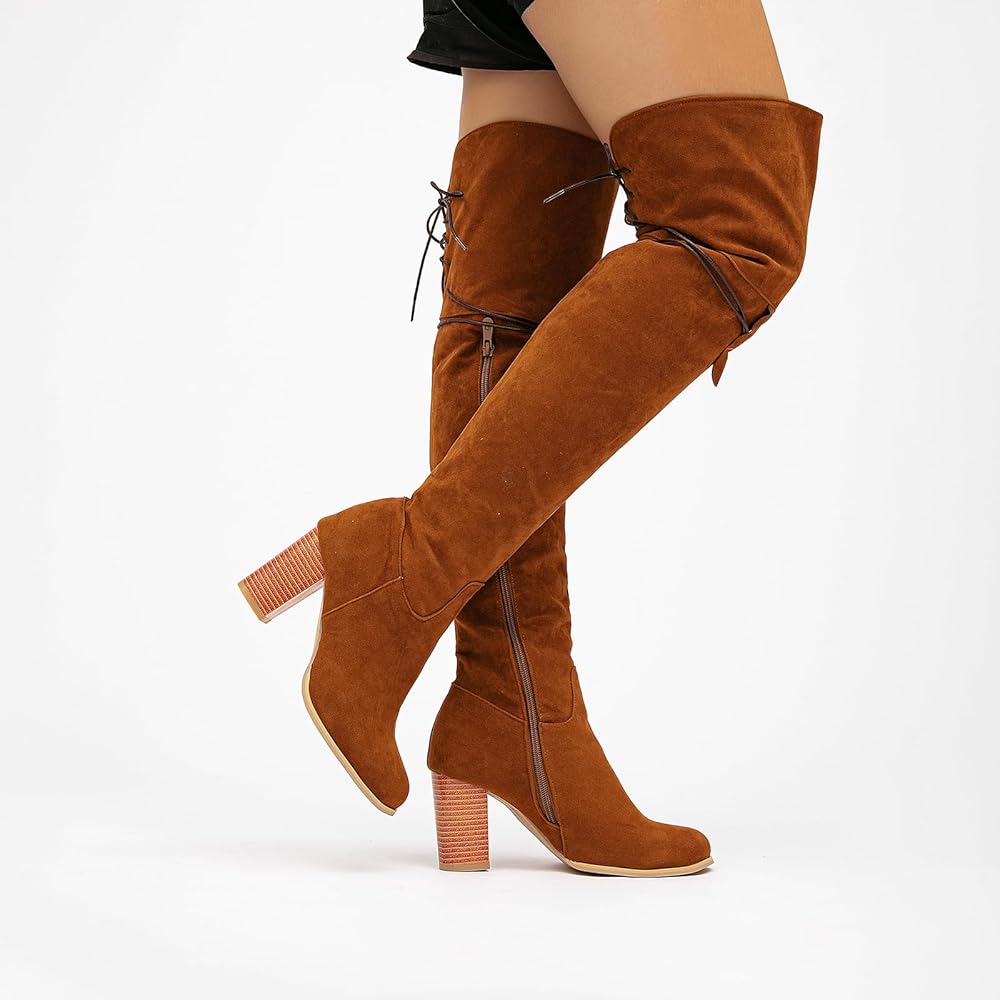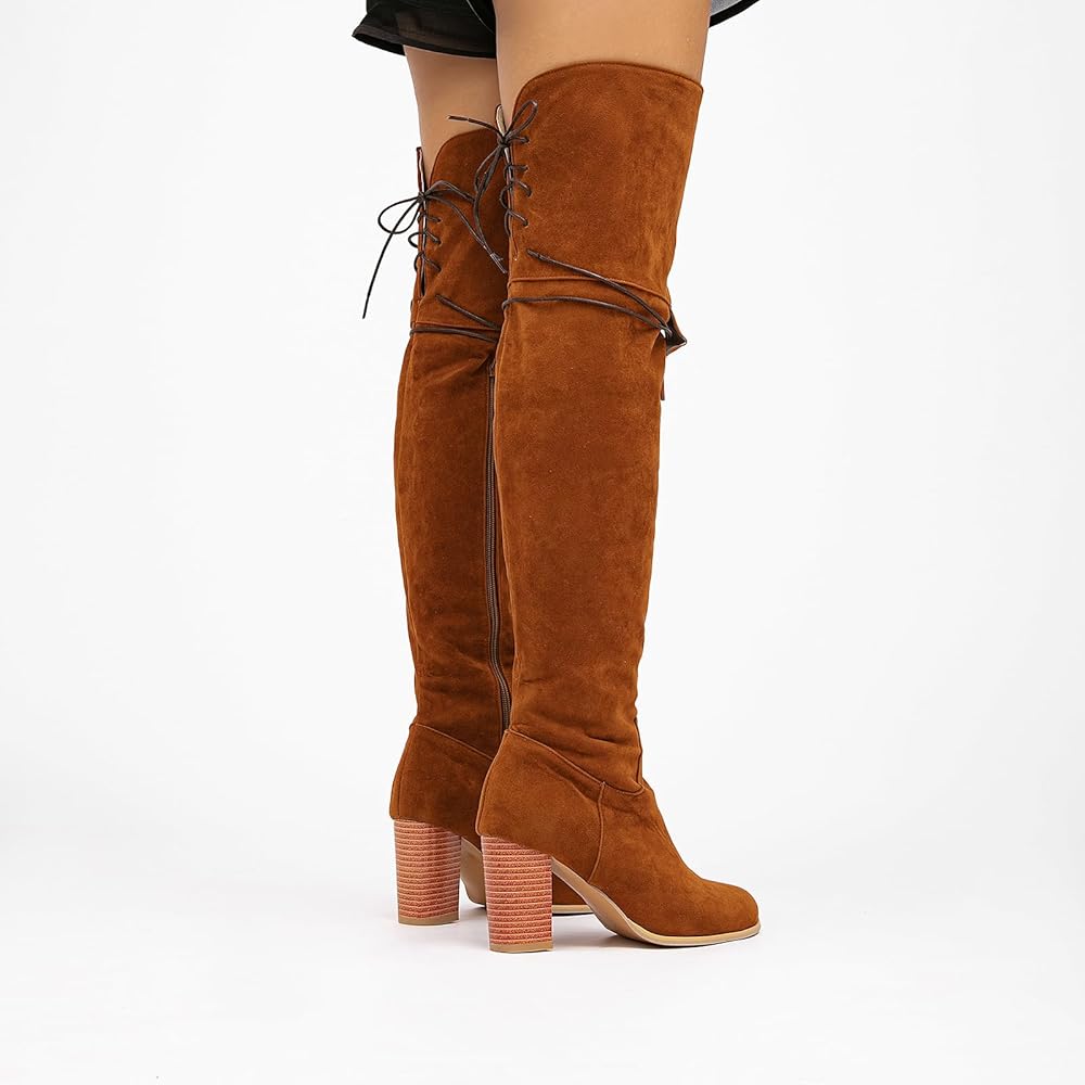 【Side Zipper and Lace Up Boots】featuring a side zipper for easy on-and-off, allowing you to slide your feet in and out with ease, these classic round-toe long boots shoes offer a perfect combination of style and convenience. The shoelace design on the top prevents the boots from falling down.
