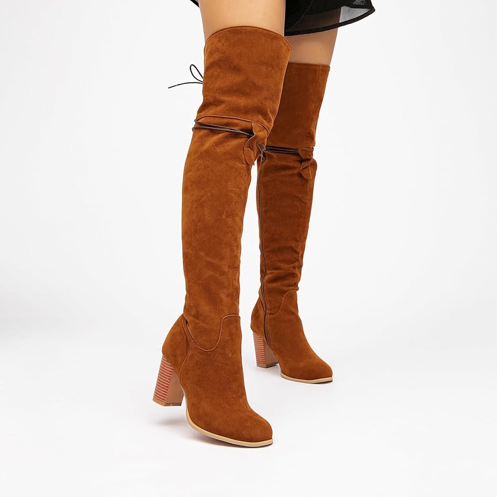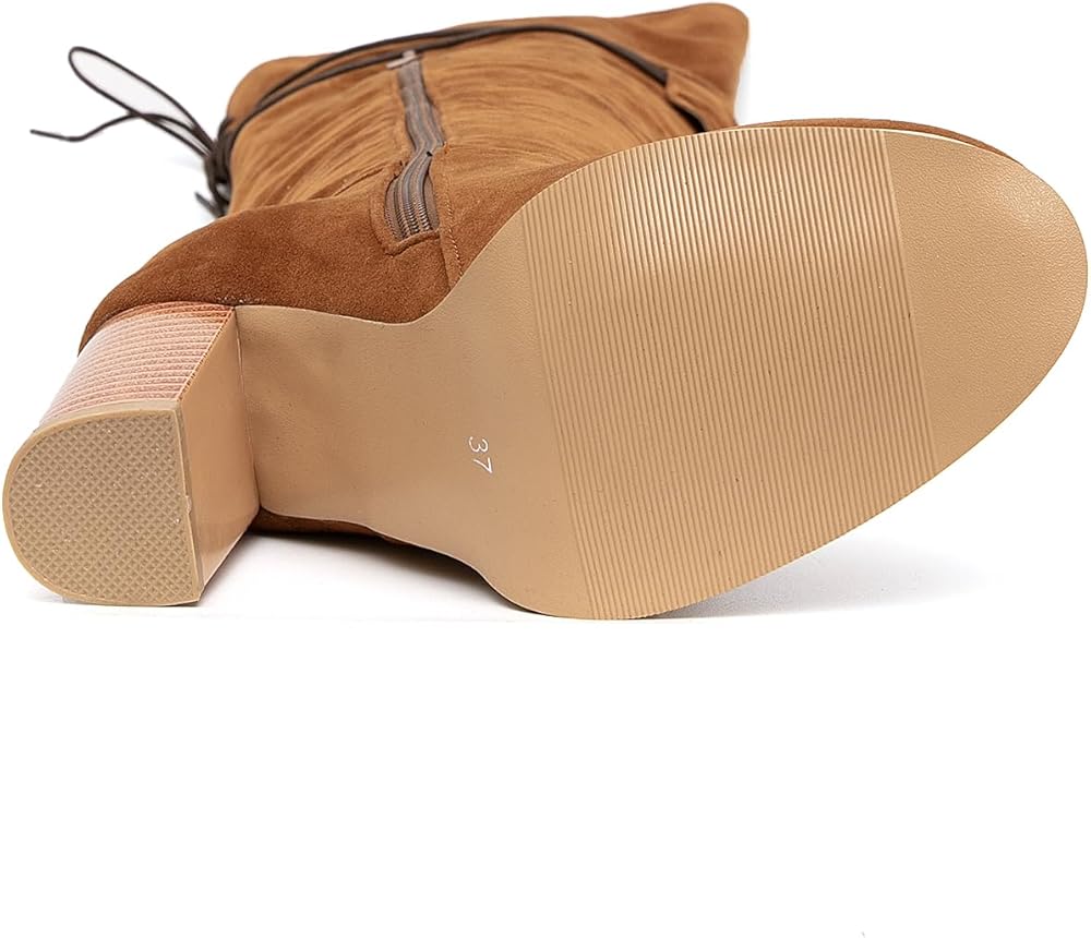 【Stretch Suede Material】Featuring with a suede vamp, these over the knee-high stretch boots are smooth to touch. The lining is skin-friendly and comfortable to wear with bare legs, provides a plush and cozy feel. Rubber sole offers exceptional traction, ensuring stability and comfort with every step.