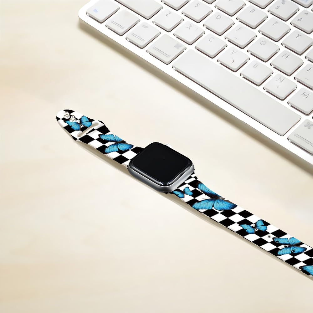 SEized Compatible with Apple Watch Band 40MM,60S Check Red Flower Wristband Black Sport Strap Soft silicone for Women Men,for iWatch Series 9 8 7 6 SE 5 4 3 2 1 Ultra