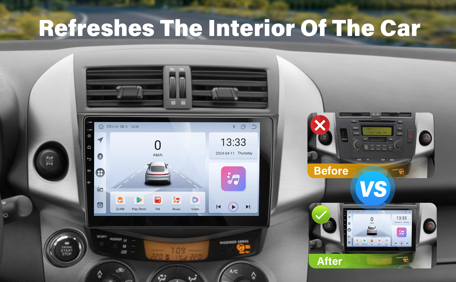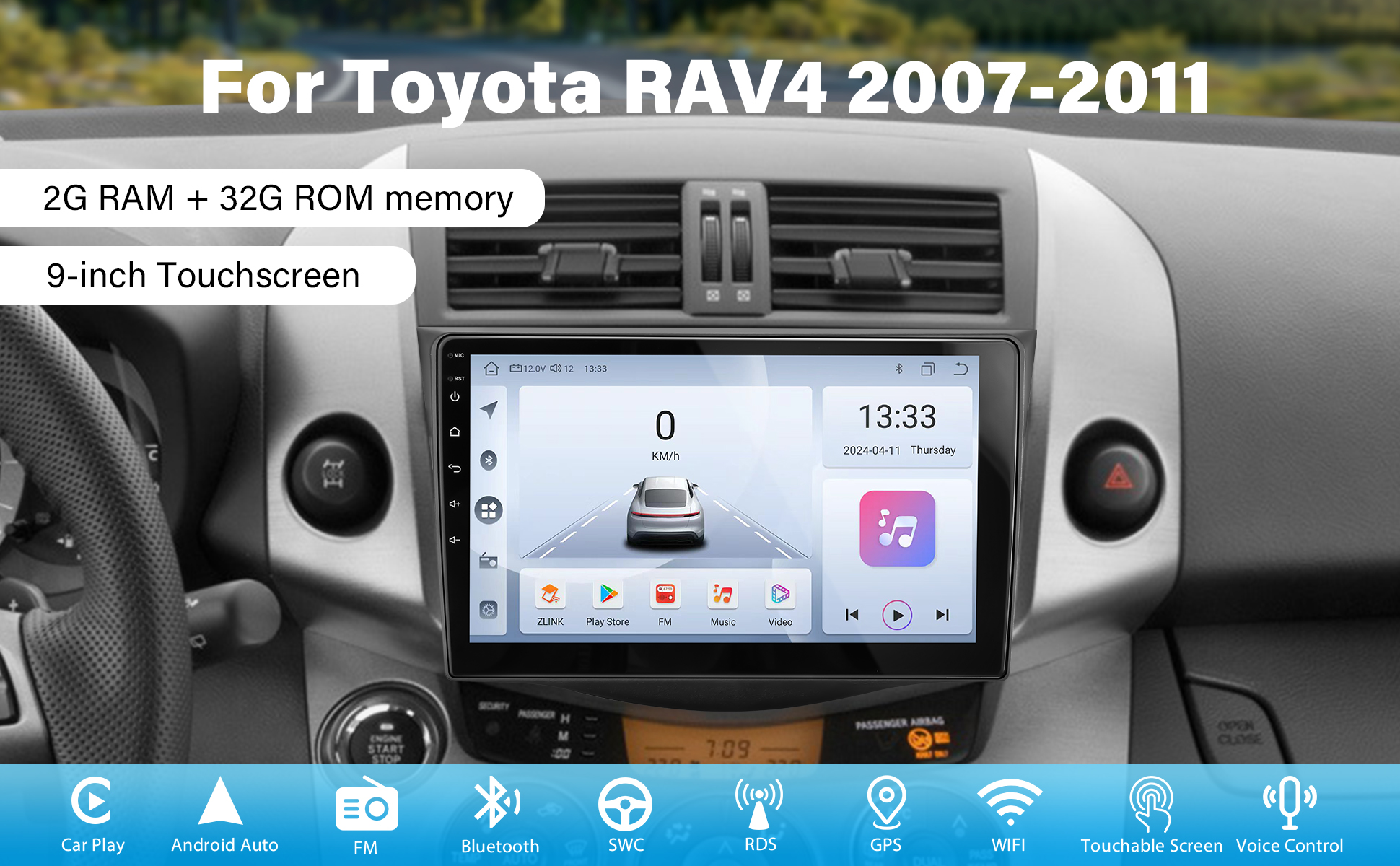 【Car Radio for Toyota RAV4】This is an Android touchscreen car stereo for Toyota RAV4 with a form factor that matches the factory dashboard, which is more beautiful and gives your car a new look. 2G RAM + 32G ROM memory and a large 9-inch touchscreen ensure smooth operation while you're driving, and the machine responds quickly.