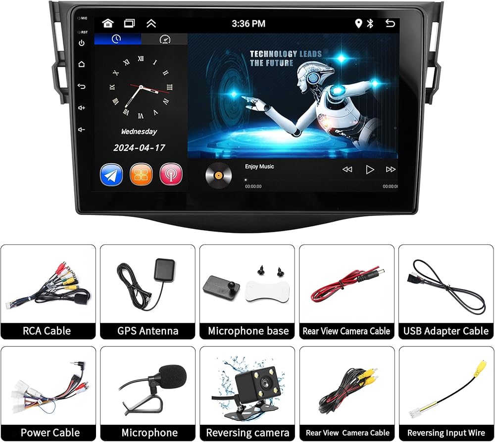 Car Stereo for Toyota RAV4 Radio 2006-2012 2GB+32GB Wireless Carplay&Android Auto GPS Navigation 9' Touchscreen Head Unit with HD Backup Camera/Bluetooth/WiFi/Miror Link/MIC/RDS/FM/SWC