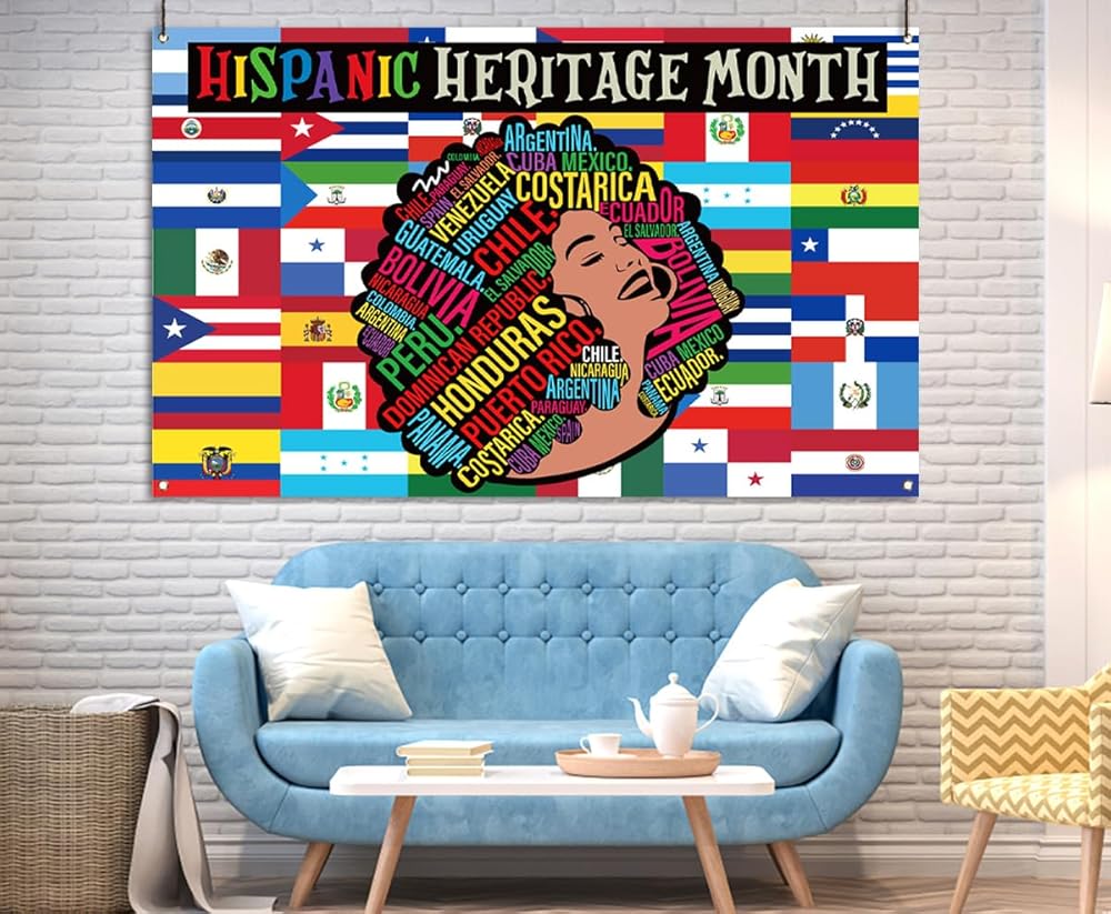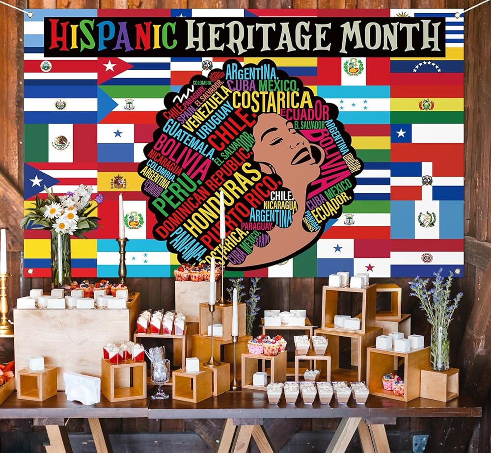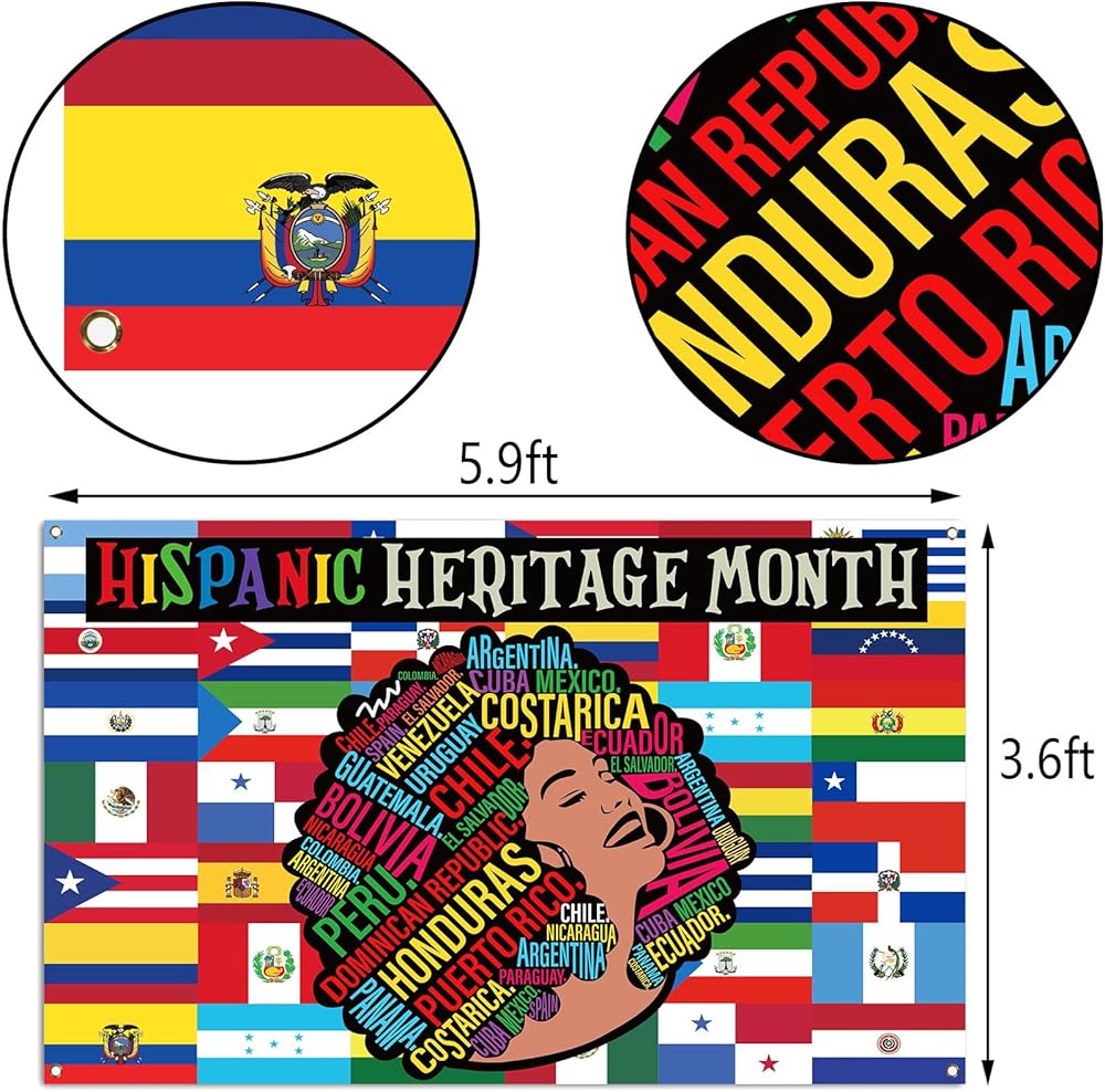 Nepnuser Hispanic Heritage Month Decoration Photo Booth Backdrop 21 Spanish Speaking Countries Culture School Classroom Indoor Outdoor Wall Decor (5.9×3.6ft)