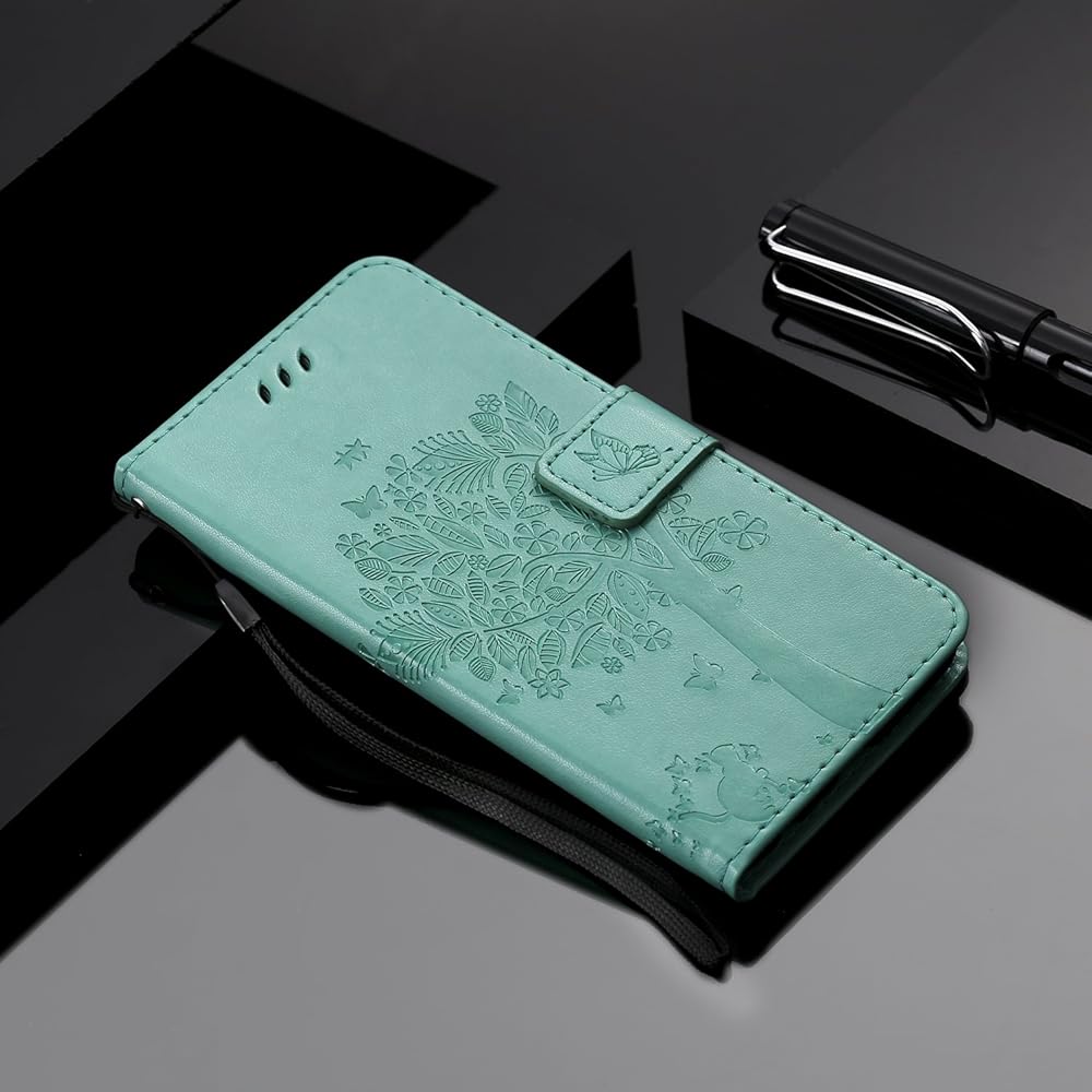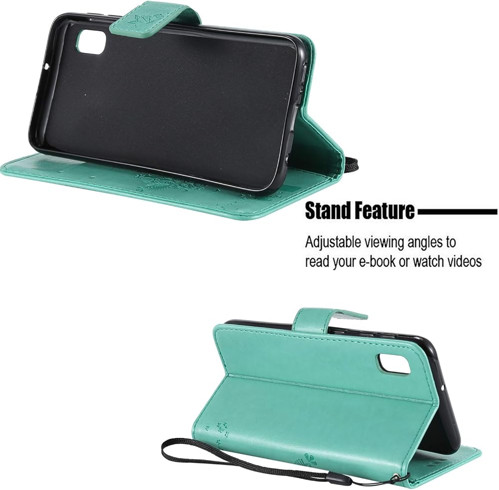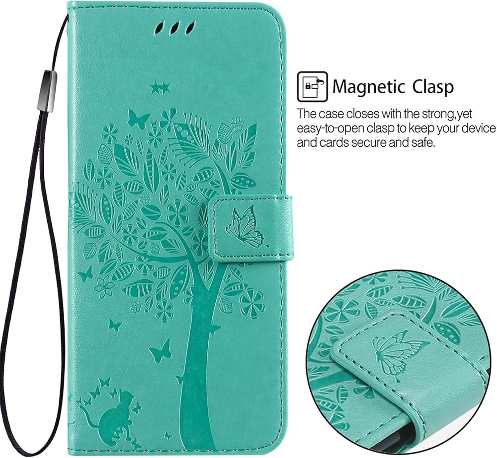 for Samsung Galaxy A10e Wallet Case with Screen Protector,Galaxy A10e PU Leather Protective Case Emboss Love Tree Cat Folio Magnetic with Card Holder Kickstand Flip Case for Samsung Galaxy A10e Green