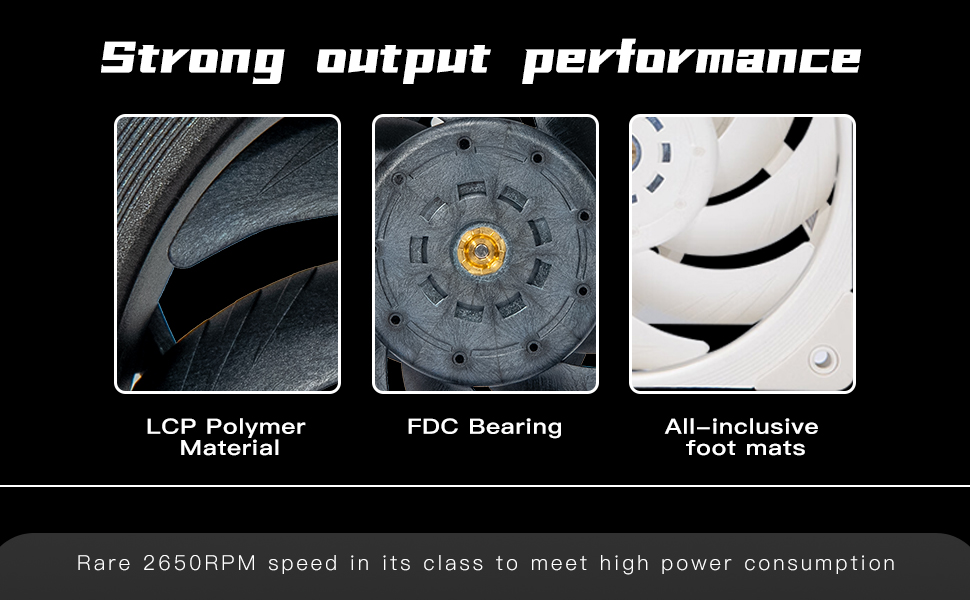 【Innovative design】: P1 performance black computer fans are made of LCP polymer material, the use of LCP material is not easy to deform at high speeds, to reduce the tip of the vortex to improve fan performance, providing 4 pieces of double-sided fully encapsulated foot pads, effectively slowing down the vibration to reduce the noise, 2650 RPM ± 10% of the full-load fan speed, PWM intelligent temperature control, FDB bearings with a low Thermal resistance coefficient, to solve the impact of gravity on heat dissipation, contact more snug, more direct heat transfer, help to maintain stable and reliable operation.