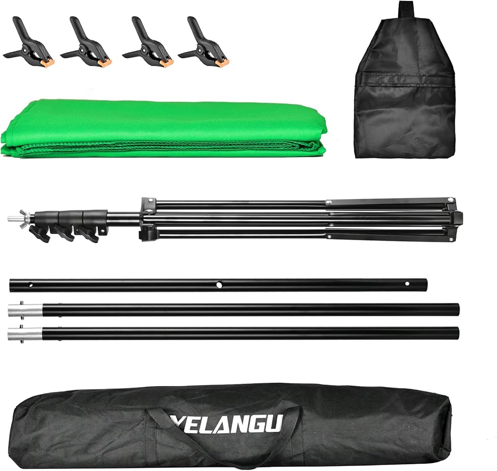 VERSATILE AND PORTABLE: YELANGU's Green Screen Stand is your ultimate Live Streaming Equipment. Perfect for character ID photos, real-time keying, online class teaching, and curtain projection. Its expanded size is 5x6.5ft with a portable package size of 28.15x6.5x4.92in. It is small, exquisite, and easy to carry – an absolute MUST-HAVE for your GREEN SCREEN KIT.
